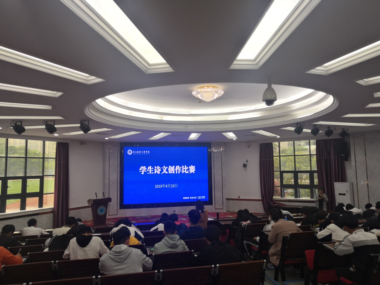 4月10中午,在教学楼一楼报告厅,学校语言文字办公室联合语文教研室举办了学生诗文创作比赛。