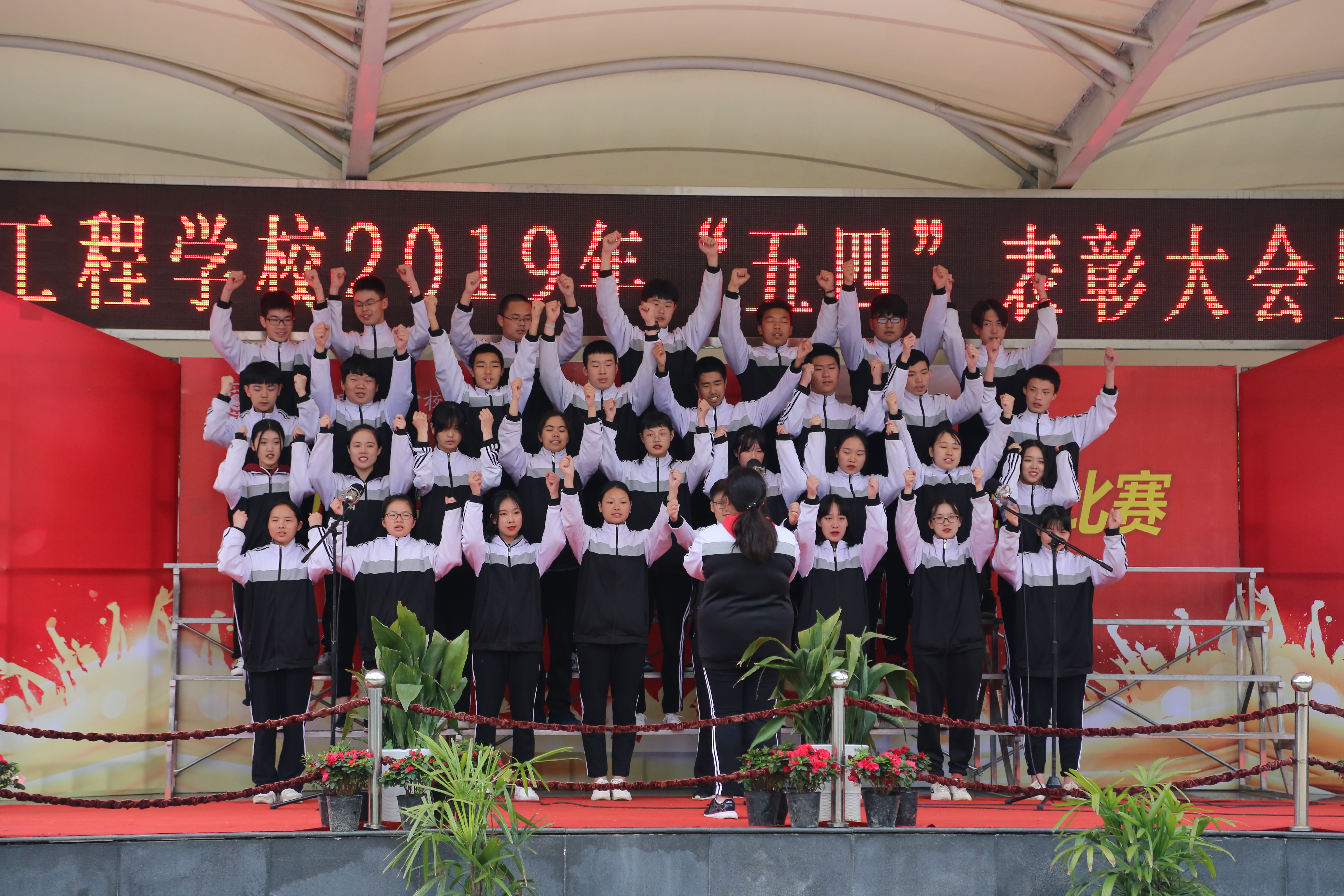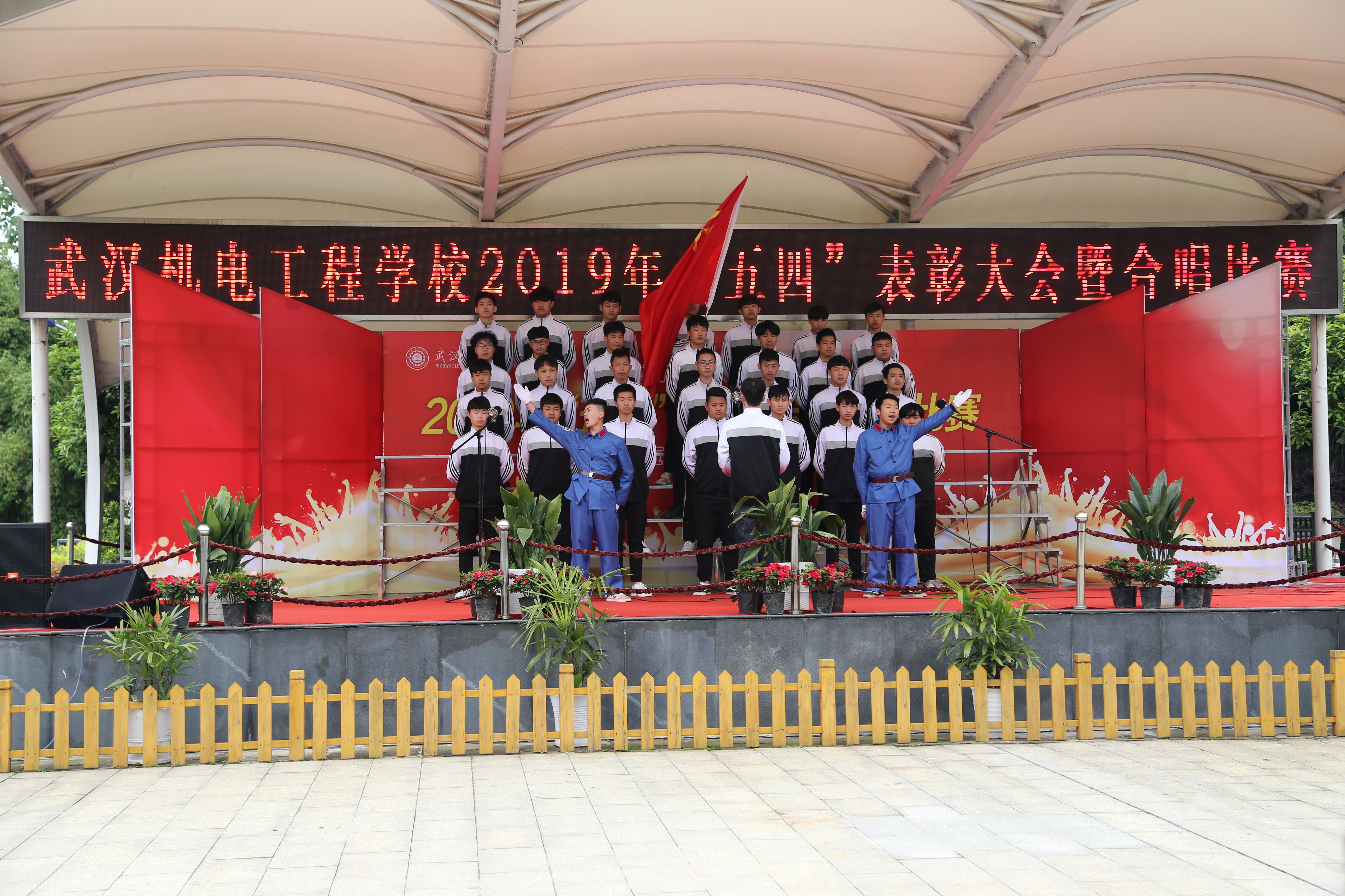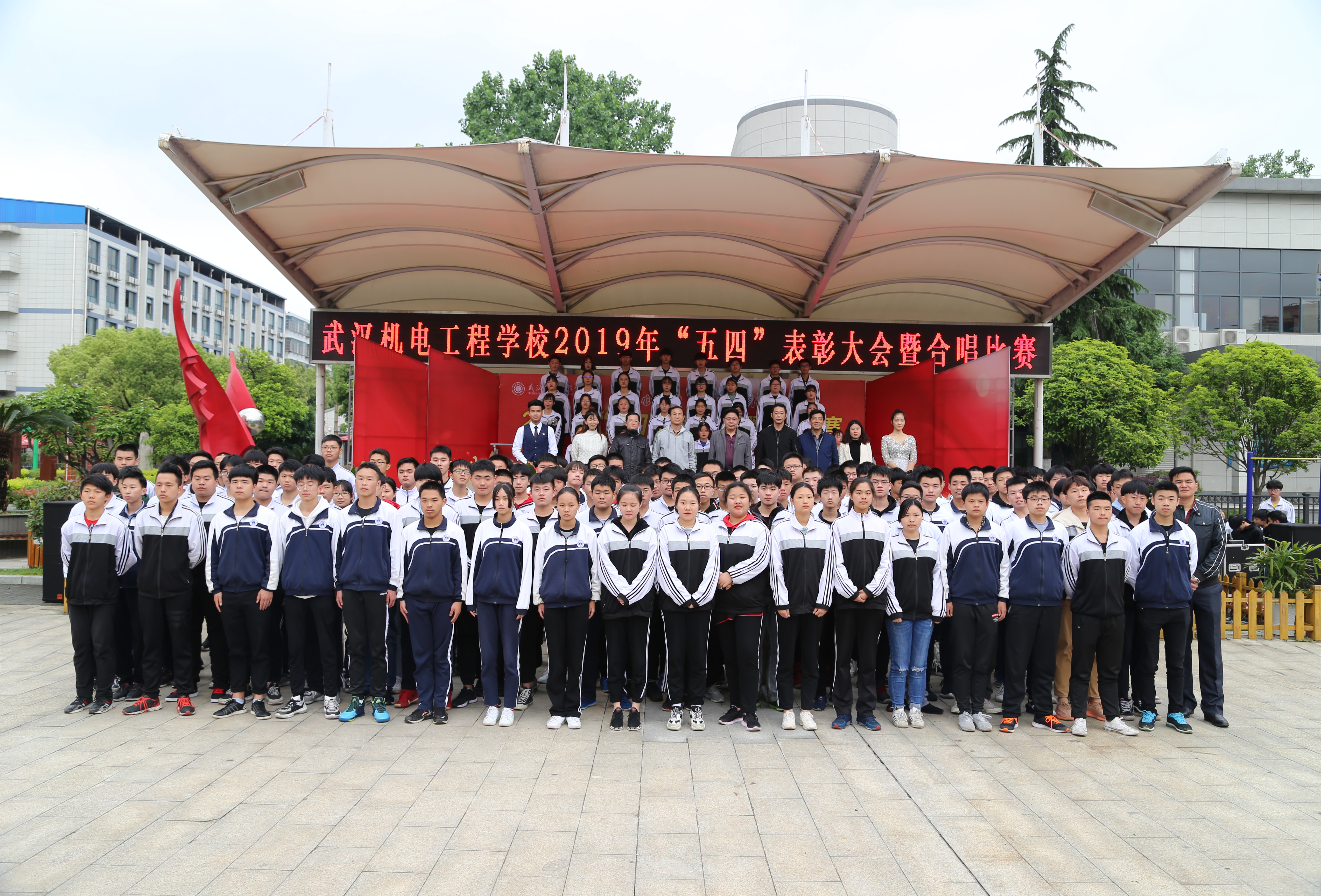 2019年4月29日下午,我校举行了“青春心向党 建功新时代”2019年“五四”表彰大会暨合唱比赛的活动。出席本次活动的学校领导有:“校长龙善寰、党委书记林汉元、副校长杨斌、副校长黄卫山”。各支部党员代表、各职能部门负责人、各专业部部长、35岁青年教师代表以及团员青年1600人参与活动。活动由“表彰大会”和“合唱比赛”两个部分组成,伴随着庄严的国歌声,“表彰大会”拉开序幕。