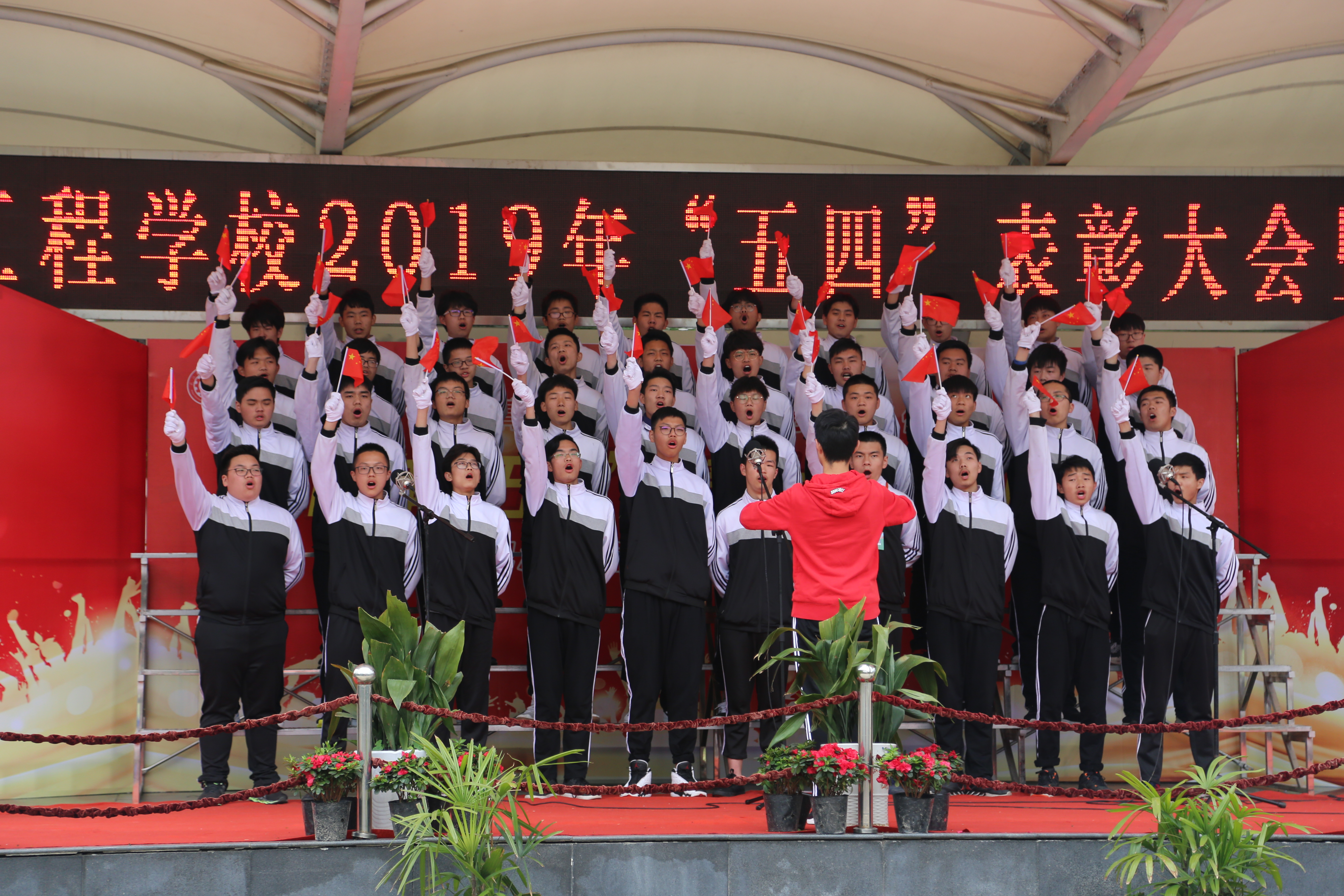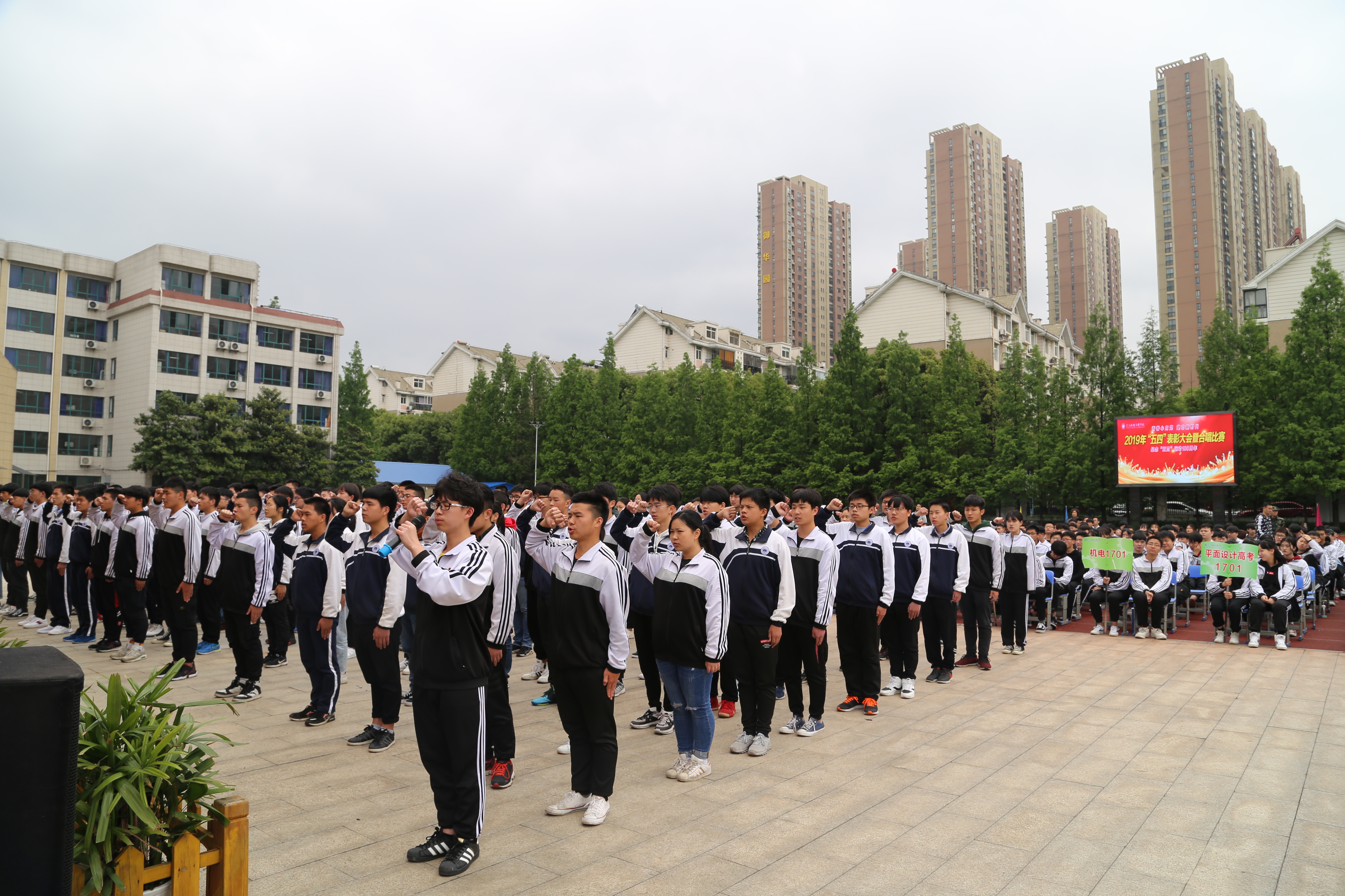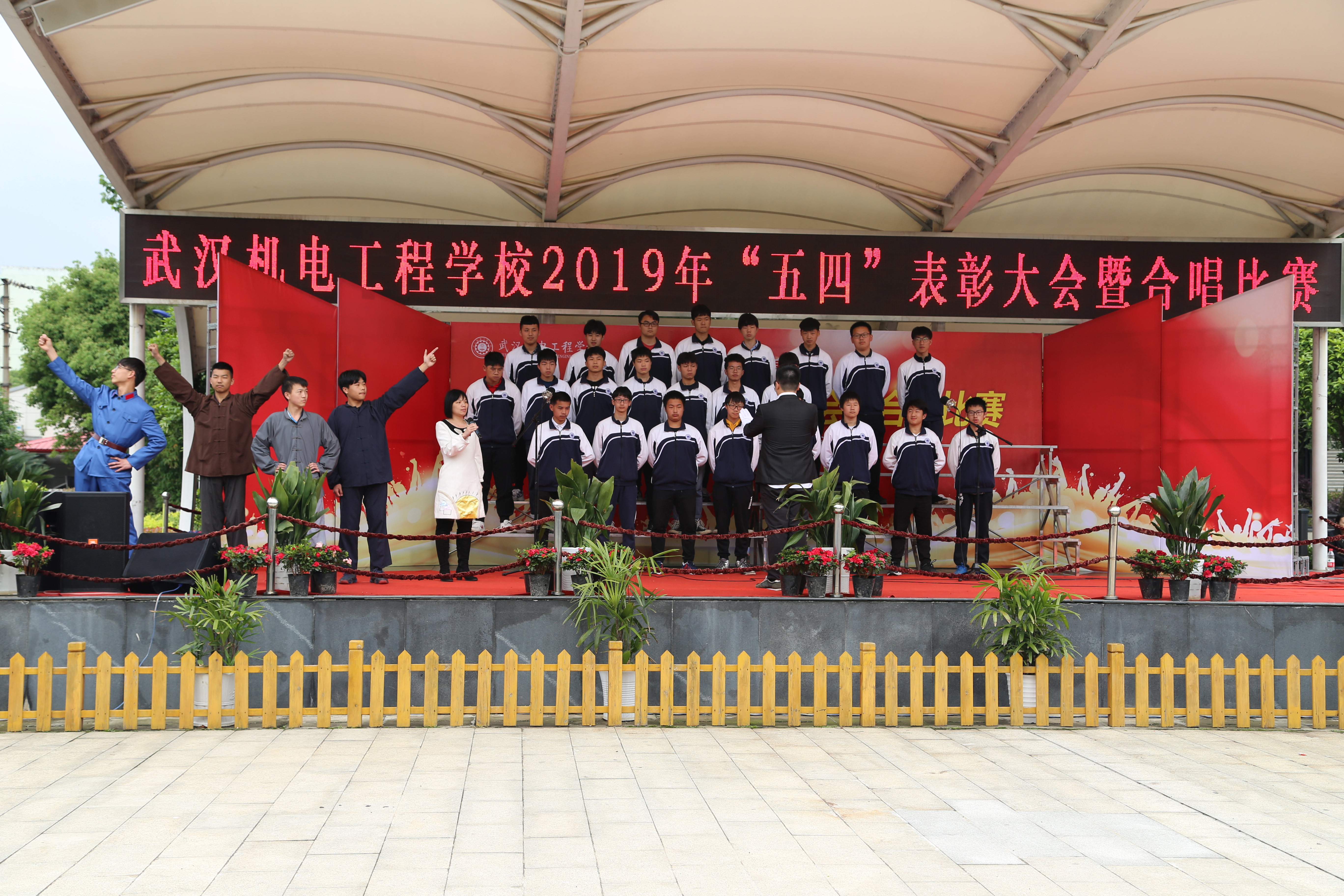 2019年4月29日下午,我校举行了“青春心向党 建功新时代”2019年“五四”表彰大会暨合唱比赛的活动。出席本次活动的学校领导有:“校长龙善寰、党委书记林汉元、副校长杨斌、副校长黄卫山”。各支部党员代表、各职能部门负责人、各专业部部长、35岁青年教师代表以及团员青年1600人参与活动。活动由“表彰大会”和“合唱比赛”两个部分组成,伴随着庄严的国歌声,“表彰大会”拉开序幕。