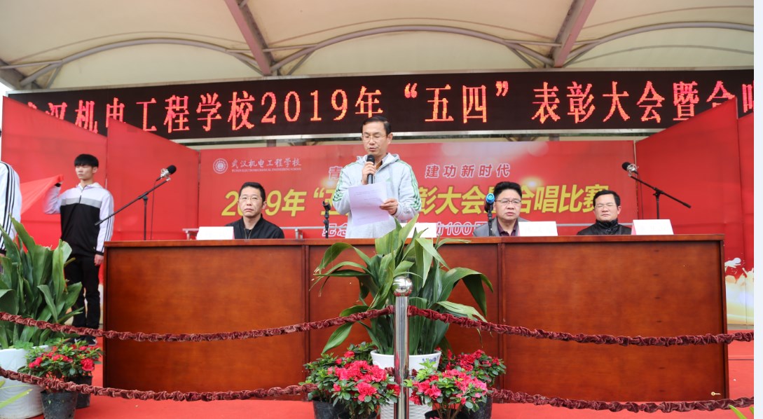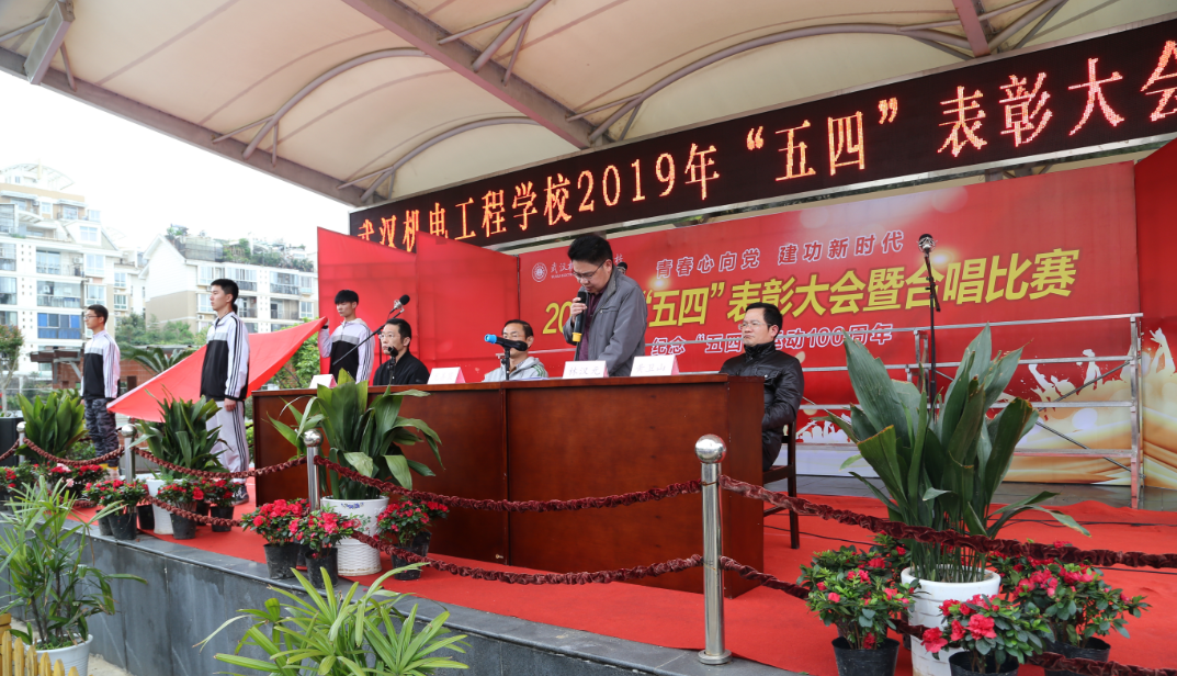 120名新团员在鲜艳的团旗下庄严宣誓,青春的誓言,高昂而雄浑,表达了同学们对共青团组织的无限向往和为团组织增光添彩的豪迈激情。随后,校长龙善寰宣读了《关于表彰2018年度先进集体和优秀个人的决定》,本次共有8个“优秀团支部”和69名“优秀团员”“优秀团干”获得校级荣誉,同时,龙校长鼓励受表彰的集体和个人以务实、创新的精神,秉承精雕质量文化,做共青团的模范、为学校发展再立新功。党委书记林汉元从加强修养,健全人格;发奋学习,志存高远;立足本职,自觉奉献;善于创造,增强本领和“讲好机电故事”5个方面勉励全体师生继承五四传统,团结一致,同心同德,在拼搏中施展抱负,在奋斗中发挥才智,在平凡中开拓创新,为学校发展贡献青春和力量,并通报了校团委2019年省级、市级“五四”评先的结果。今年,学校团委被共青团湖北省委授予“省级五四红旗团委”、被武汉市教育局团工委授予2个“先进团支部”和9个“优秀团员”“优秀团干”“优秀青年志愿者”。