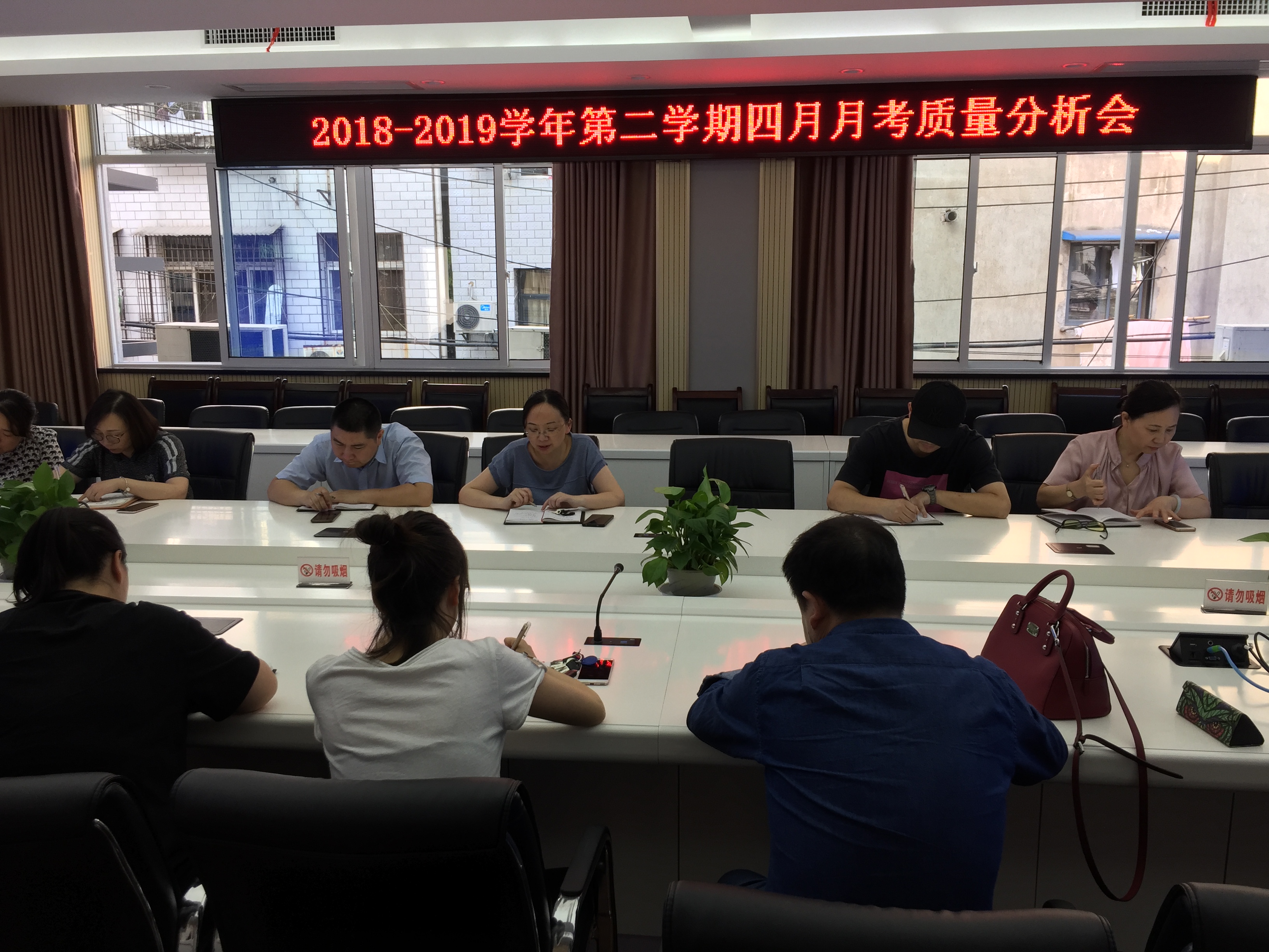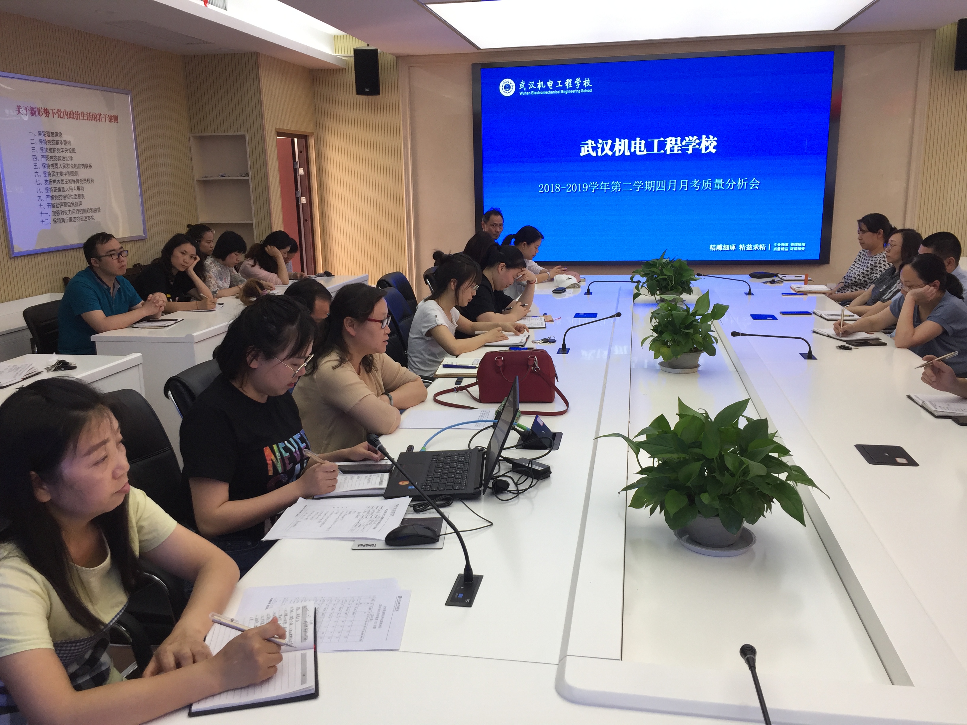 5月27日下午15:40,我校4月月考质量分析会在综合楼二楼会议室举行,会议由教务处周凌主任主持,参加此次会议的有各教学部部长、教研室主任、公共基础部汇报发言教师、教务处全体人员。