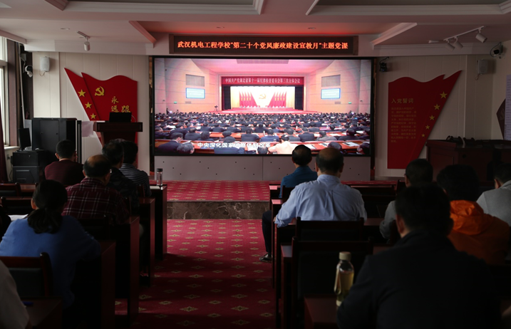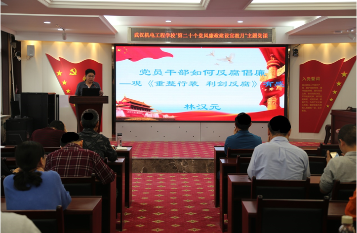 5月30日下午,武汉机电工程学校党委、纪委在综合楼5楼报告厅开展第二十个党风廉政建设宣传教育月主题党课活动。党委书记林汉元讲廉政党课,全体党员、中层以上干部92人参加了党课活动。党委委员、纪委书记龚蔚主持廉政党课。