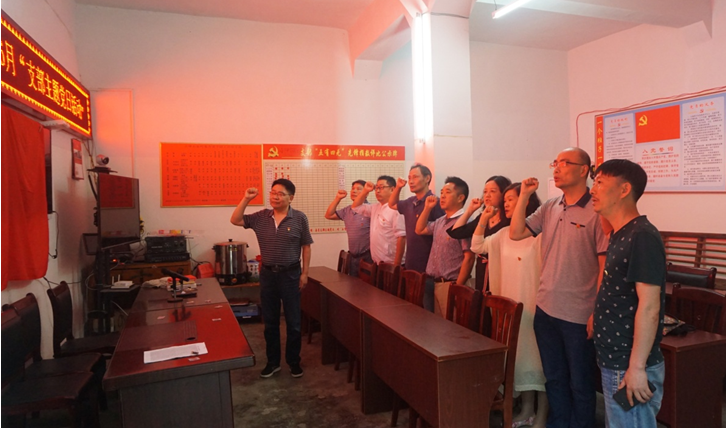 最后,在小神农架村党建活动室,三个单位党组织的党员举行了重温誓词入党宣誓仪式。入党宣誓仪式由林汉元书记主持并领誓,在庄严的党旗下,在高声朗读入党誓词声中,大家情绪激昂,对党的敬意,对共产主义的信念得到了升华。