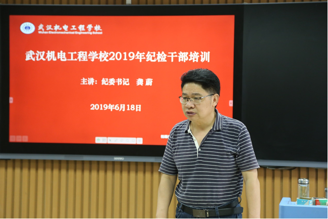 6月18日,在我校综合楼三楼录播室开展2019年纪检干部专题培训。由学校党委委员、纪委书记龚蔚主讲,校纪委委员、支部纪检委员、党支部书记、党群工作部和办公室(纪检监察室)工作人员等参加了培训。