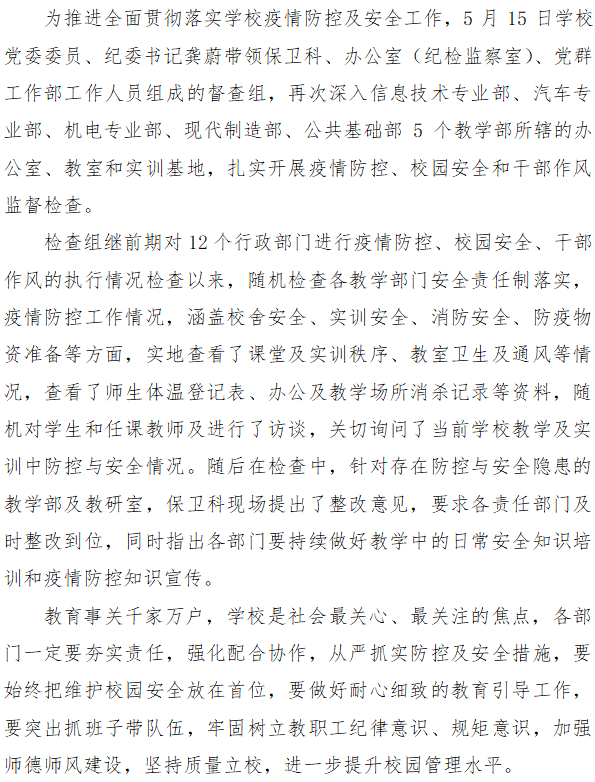 强化学校复学防控 监管保校园平安
