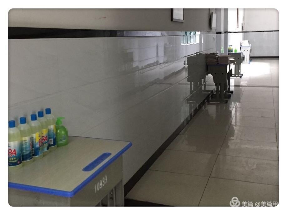 学生工作处负责建立健全班级、宿舍卫生检查制度,督促学生养成良好卫生习惯。各班主任和任课教师负责对本教室桌椅,书柜,讲台,门把手,地面,卫生角,窗台等角落进行消毒,用大喷雾器(装84消毒液配比)全面喷洒,夜间对班级空气进行紫外线消毒。学生宿舍的消杀则由寝室管理的生活老师来完成,并做好相应记录等。