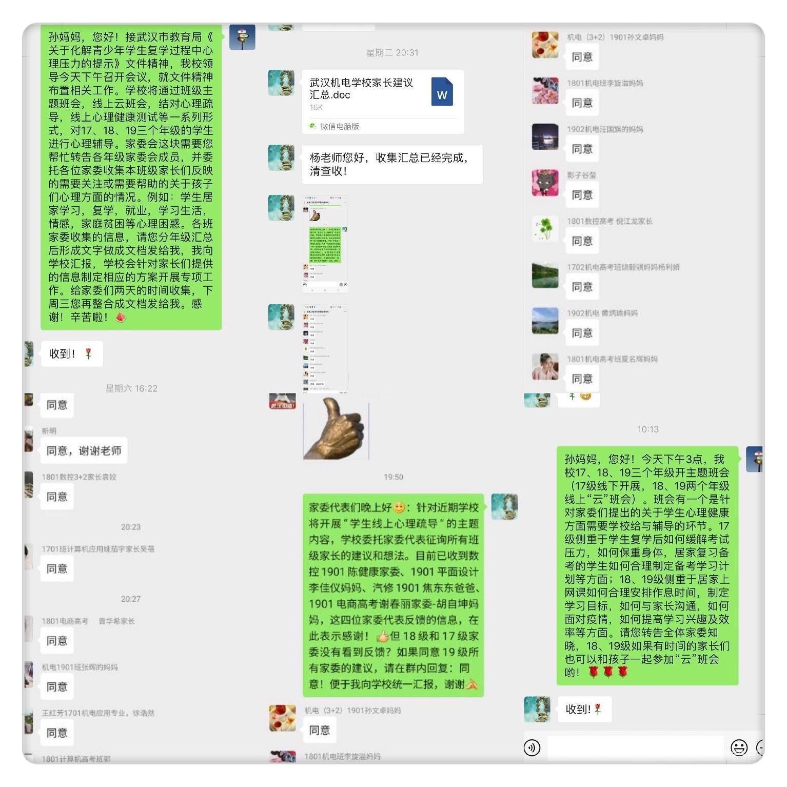班会前期,杨侠老师收集家委会心理健康方面建议和需求