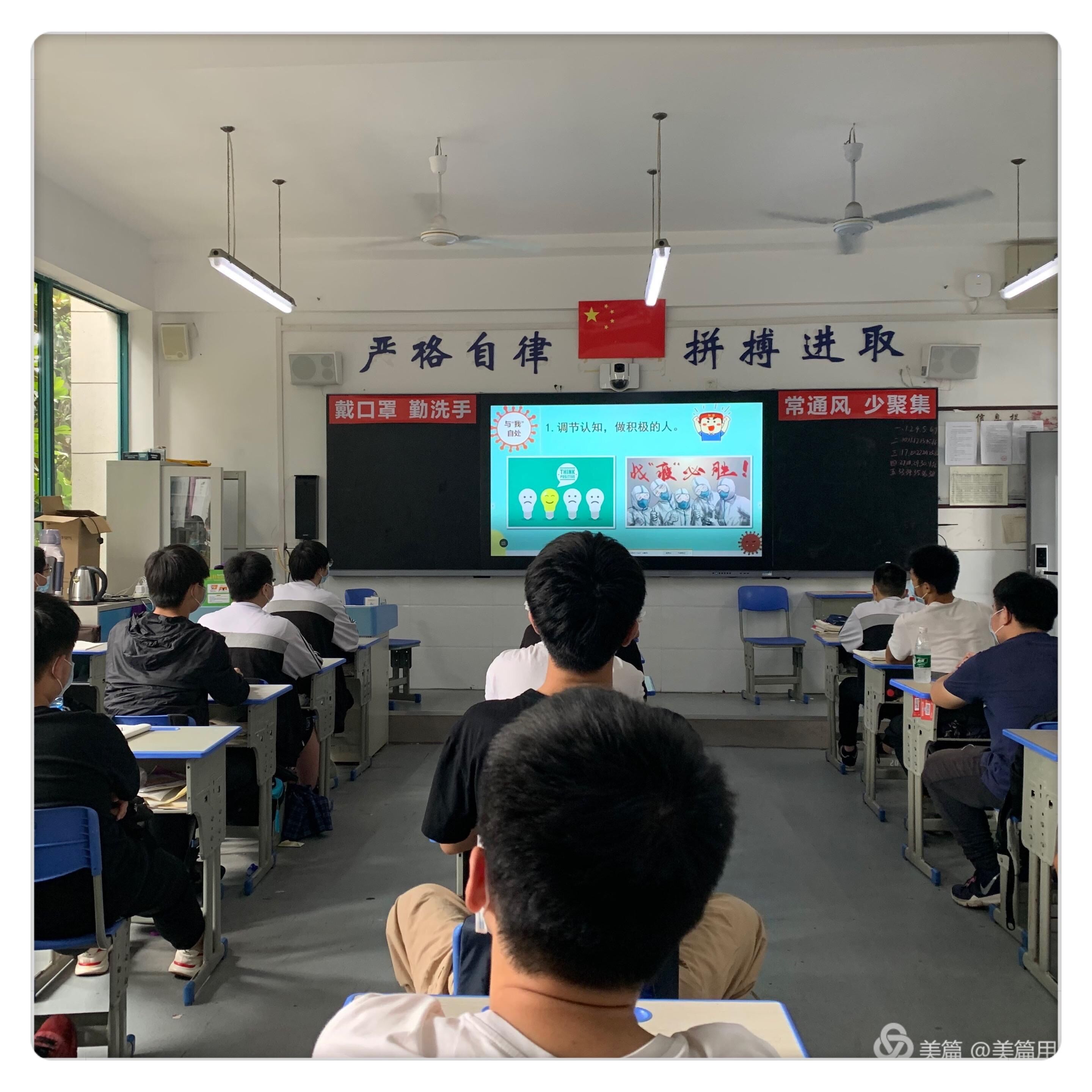班会前期,学工处、校团委通过线上线下收集家长委员会和学生关注的问题及心理困惑进行分年级摸底。17级重点针对复学在校的学生如何缓解考试压力和其它方面的心理困惑,在非常时期如何保重好自己的身体;居家备考的学生如何合理制定备考学习计划,同时及时关注学校发布的高考相关信息。18级、19级重点针对居家的学生如何合理安排时间,制定学习目标,培养有益于身心健康的兴趣爱好;对居家的学生如何提高上网课的兴趣和效率加以指导;居家的学生如何和家长沟通,营造和谐的家庭氛围;居家的学生如何调适面对疫情的心理等。