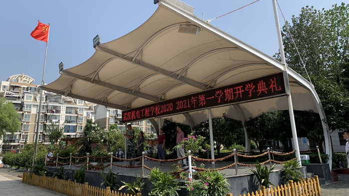 在庄严的国歌声中,典礼正式开始。校长龙善寰首先祝贺全体新生圆梦机电学校,勉励大家在这里构筑新梦想,成就最好自己。龙校长强调,当代青年学生在筑梦过程中要“拥有家国情怀,做时代爱国青年”。要将爱国落到自爱、尊师与爱校的具体行动上:坚守初心使命,不懈怠、不松劲;遵守校纪校规,珍惜学校声誉,守规矩,谨言行;敬畏师道尊严,守护师生互信,不投机取巧,不精致利己;坚守人伦道德,常怀感恩之心,爱父母,爱集体;养成良好学习习惯,树立积极人生态度,心有阳光,永远善良,成就自己人生中最美好的职校生活。
