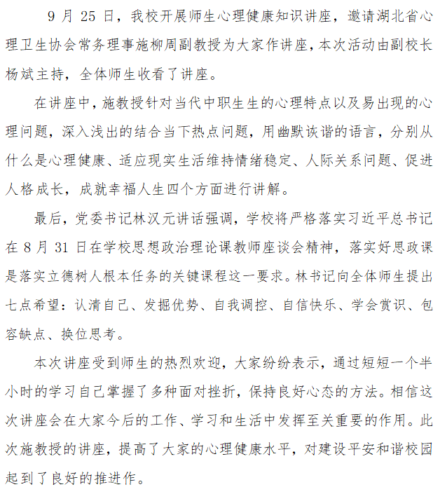 透析性格 快乐交往——我校开展师生心理健康知识讲座