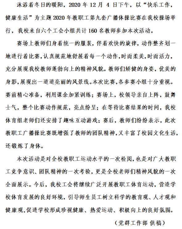 快乐工作 健康生活——武汉机电工程学校开展教职工第九套广播体操比赛