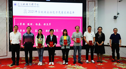 赛后,杨斌副校长宣布了我校班主任能力竞赛的得奖结果,并鼓励获奖班主任再接再厉,取得更加优异的成绩。希望广大班主任相互借鉴,取长补短,努力提升班主任工作能力,不断提高我校学生管理工作水平。校领导龙善寰、杨斌、龚蔚、黄卫山向本次班主任能力竞赛获奖选手颁发了证书。