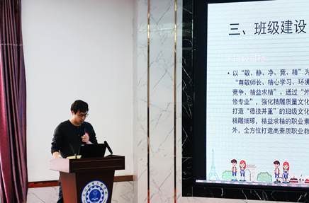 全国职业院校大赛中等职业学校班主任能力比赛由教育部组织,分为国赛、省赛、市赛。为做好选拔和备赛工作,学校成立了竞赛组委会,在学生工作处、思政教研室的精心组织下,全体班主任踊跃参赛,共收集到29件参赛作品。评审组对“班级建设方案”、“班级教育故事”、“主题班会活动方案”和“专业人才培养方案”四个规定的参赛作品进行严格评审,评出一等奖3人、二等奖5人、三等奖6人。