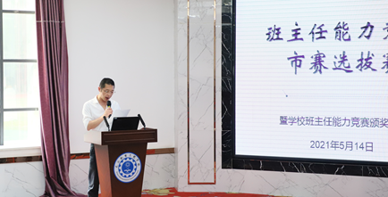 最后,龙善寰校长在颁奖仪式上作总结发言,强调了班主任工作及班主任队伍建设的重要性,对本次比赛的组织和选手的表现表示了高度的认可,希望参加市赛的三位班主任老师,取得优异的成绩,为校争光。同时要求学生工作处等部门及教师重积累、强建设,把从比赛中获得的学生管理经验用到工作实际中,不断提高对班主任培训和指导的水平,以赛促建,打造一支更加专业、更加高效的班主任队伍。