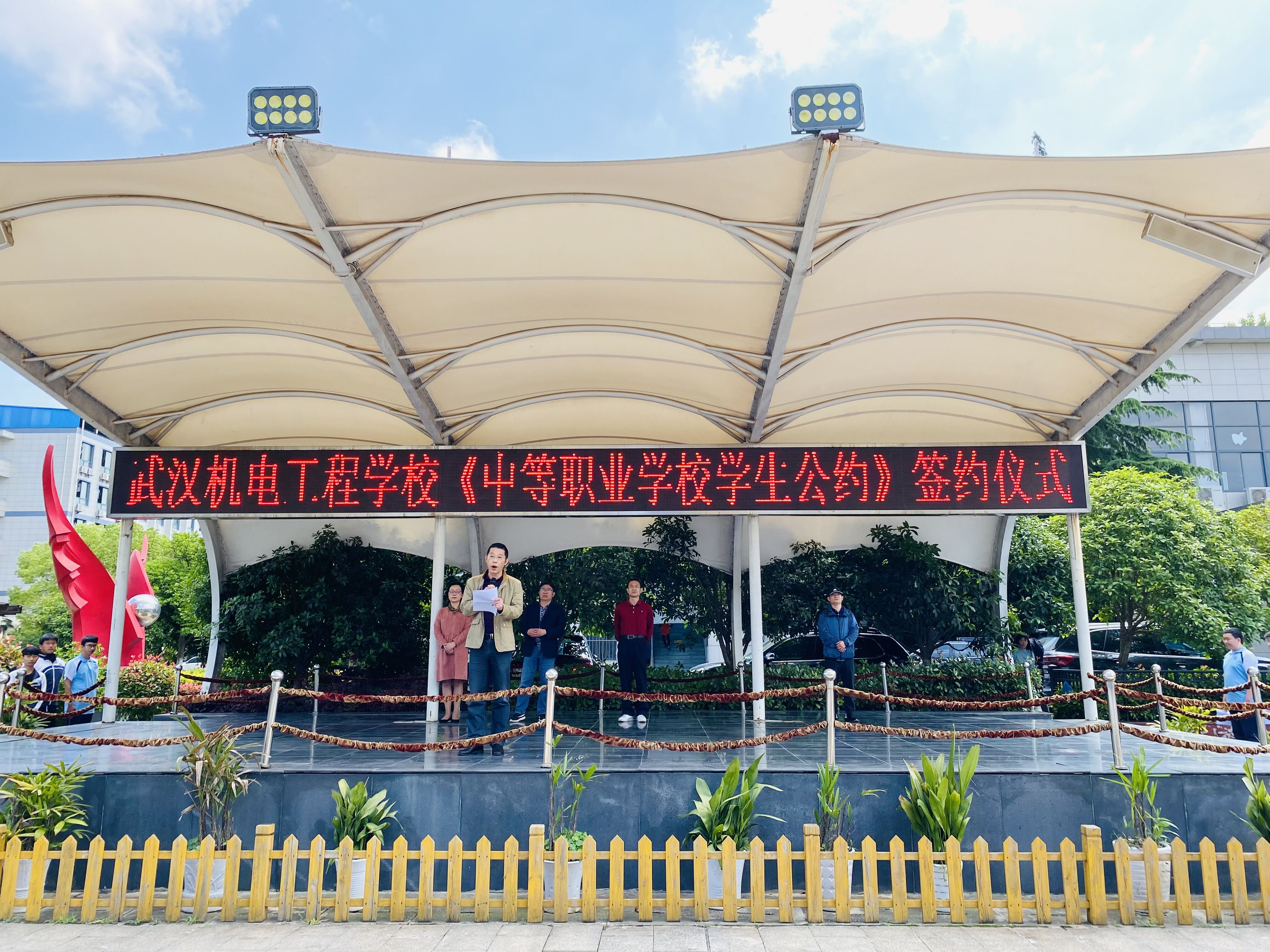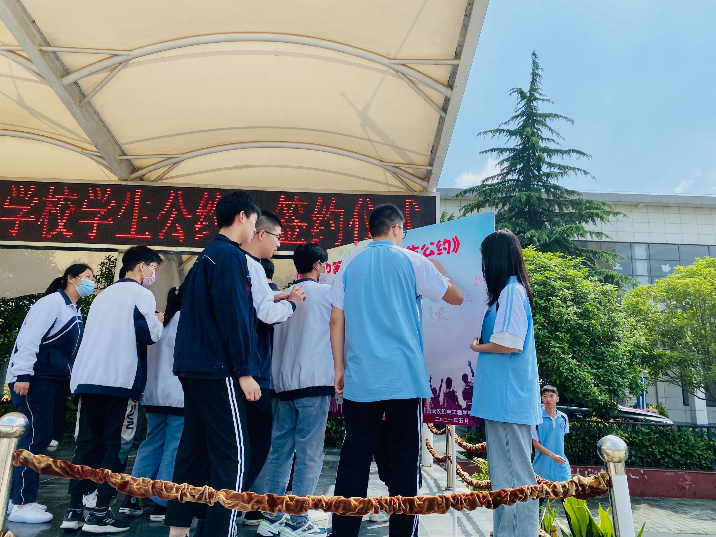 在签约仪式上,副校长杨斌要求同学们牢记公约,努力成长为具有良好个人品德、社会公德、家庭美德和职业道德的中职生,做到知行合一。机电高考2001班诵读了《中等职业学校学生公约》,发出了 “我签约我践行,争做文明中职生” 的倡议,号召广大同学树立远大理想,从我做起,从身边做起,在日常的学习和生活中,践行公约要求,为建设文明和谐校园做出自己的贡献。