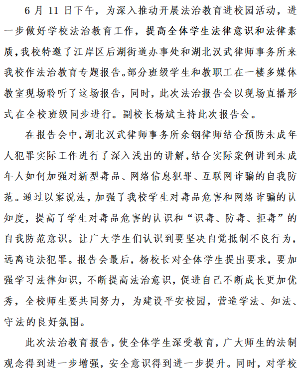 副校长杨斌主持法治教育报告会
