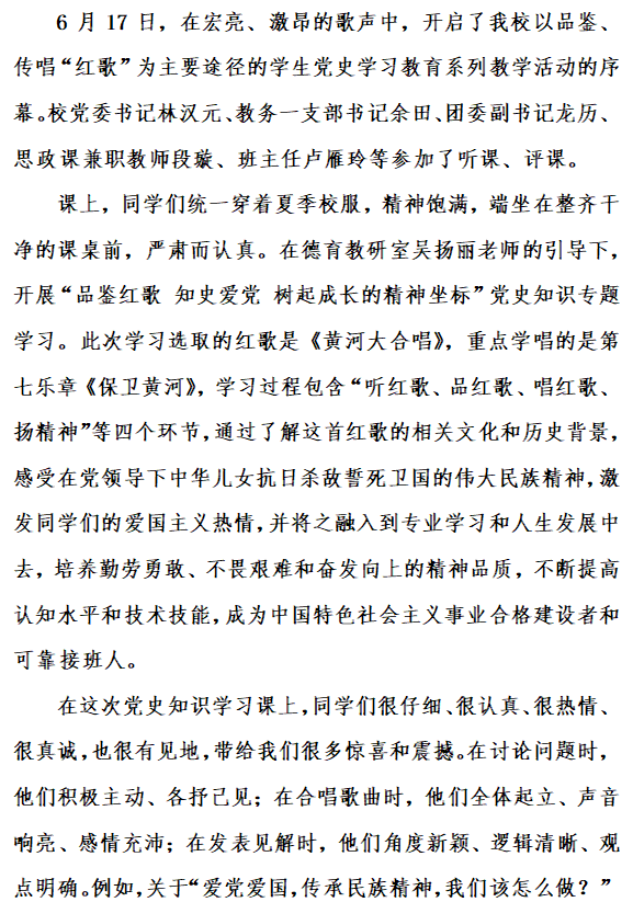 品鉴红歌 知史爱党 树起成长的精神坐标