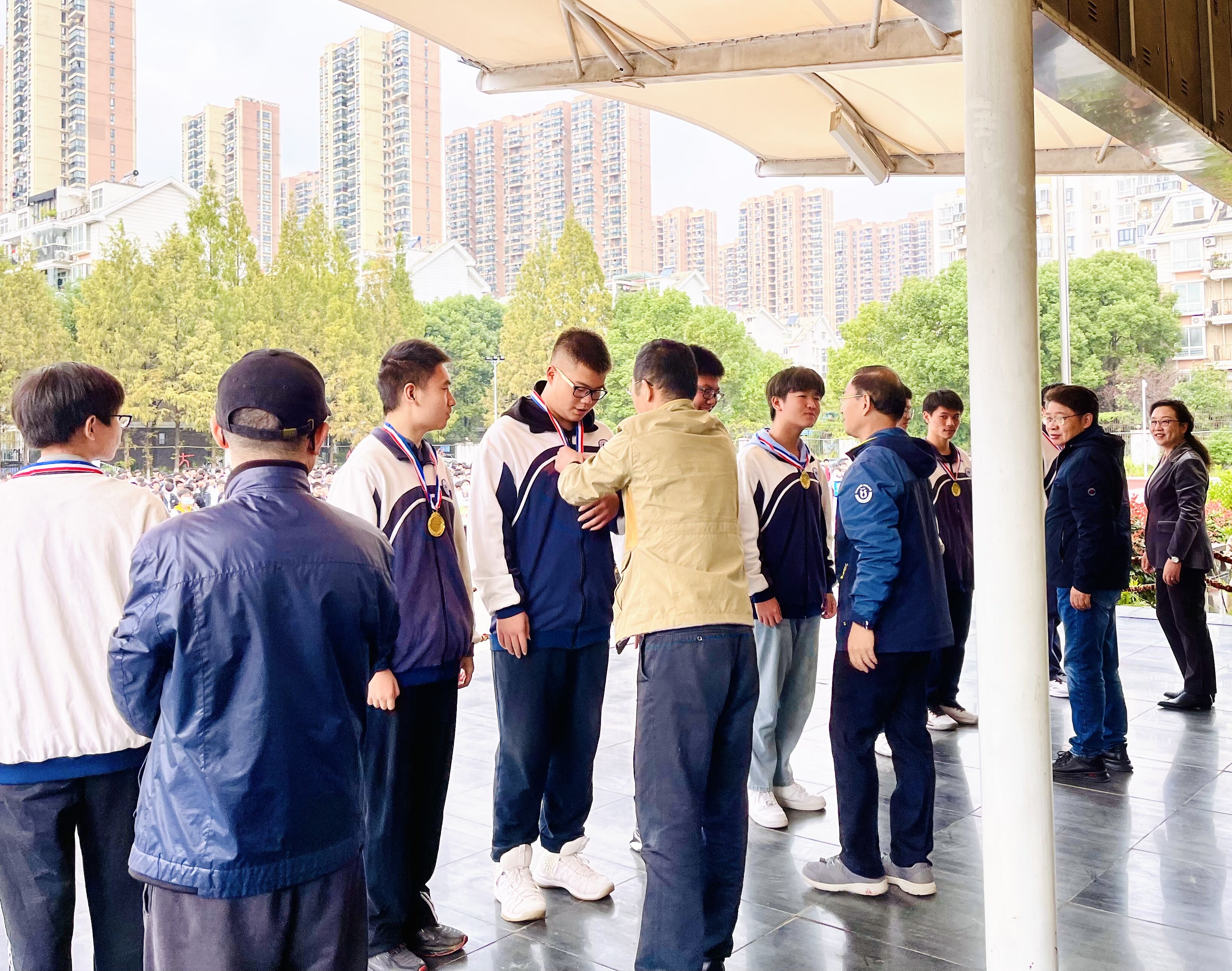 升旗仪式上,龙校长宣读了表彰名单,授予我校8名学生为“抗击新冠肺炎疫情青年志愿服务先进个人”称号,校领导为先进学生志愿者挂牌。学生志愿者代表发言分享志愿服务的经历。他们在志愿服务的过程中,有的扎根社区,为居民群众服务,协助开展社区防控、人员排查、环境消杀;有的坚守在交通卡口、机场车站,协助开展体温检测、车辆排查;有的为医疗机构提供后勤保障,为医护人员子女提供志愿服务。他们真诚奉献、不辞辛劳,以实际行动展现了我校青年的理想信念、爱心善意、责任担当,是广大团员青年学习的榜样。