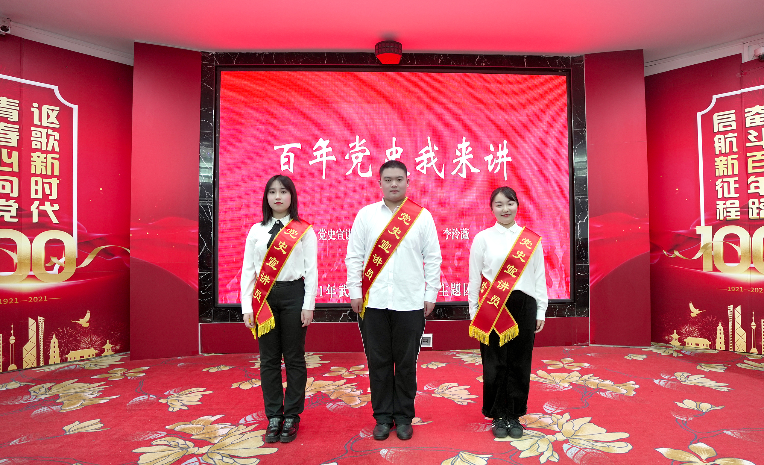 三位学生代表分别从党的一大、党领导的人民军队、统一战线三个方面进行宣讲。他们分别谈到,中国共产党的发展历史,是中华民族抵抗外来侵略的历史。它记载了一位又一位的革命者为祖国的自由而战斗的峥嵘岁月,记载了一名又一名英雄的战斗抵抗外来侵略的艰苦日子,记载了革命英雄的英勇事迹,记载了革命英雄的可歌可泣的坚强的精神,记载了中华民族曾经面临的艰危岁月。中华民族是一个英雄辈出的民族,他们可以忍受常人所不能忍受的艰难困苦,当面对危险可以为了胜利抛头颅洒热血,全因他们内心有着强大的信念信仰支撑。这种为了理想信念而顽强不屈的精神正是我们青年学生所需要学习的,他们是我们的榜样。