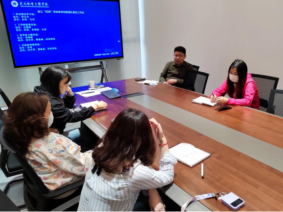 创新团队项目负责人余田主任主持了本次推进会。余田主任首先通报了武汉市中职思政教师创新团队中期验收工作情况,对“政治站位高,道德情操高,理论学识高,信息技术高”进行了深入解读,详细介绍了我校“四高”思政教师创新团队建设的工作目标,建设内容和措施,实施步骤及预期成果等。在推进会上,余田主任宣布成立政治理论学习组、工作制度建设组、教学能力提升组和实践基地建设组4个工作组,以及思政示范课堂、课程思政典型案例等3个竞赛小组,明确责任到每位创新团队成员。同时确定迎接6月中期检查具体工作内容以及今年工作目标。
