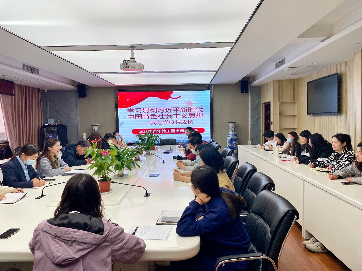 为弘扬五四精神,传承优良传统,进一步完善学校青年教工团组织的工作,增强共青团组织战斗力和凝聚力,充分发挥青年教工在学校教学、学生教育管理中的作用,在“五四”青年节到临之际,2023年4月27日我校组织召开了 “学习贯彻习近平新时代中国特色社会主义思想——我与学校共成长”的主题会议。参加此次会议的有学校党委书记林汉元同志、团委书记龙历老师、教工团支部书记兼纪律委员陈丽老师、组织委员兼学习委员潘锐老师、宣传委员兼文艺委员郑岚老师、生活委员兼体育委员鲍童老师以及所有青年教职工。本次会议由团委老师黄蓉主持。