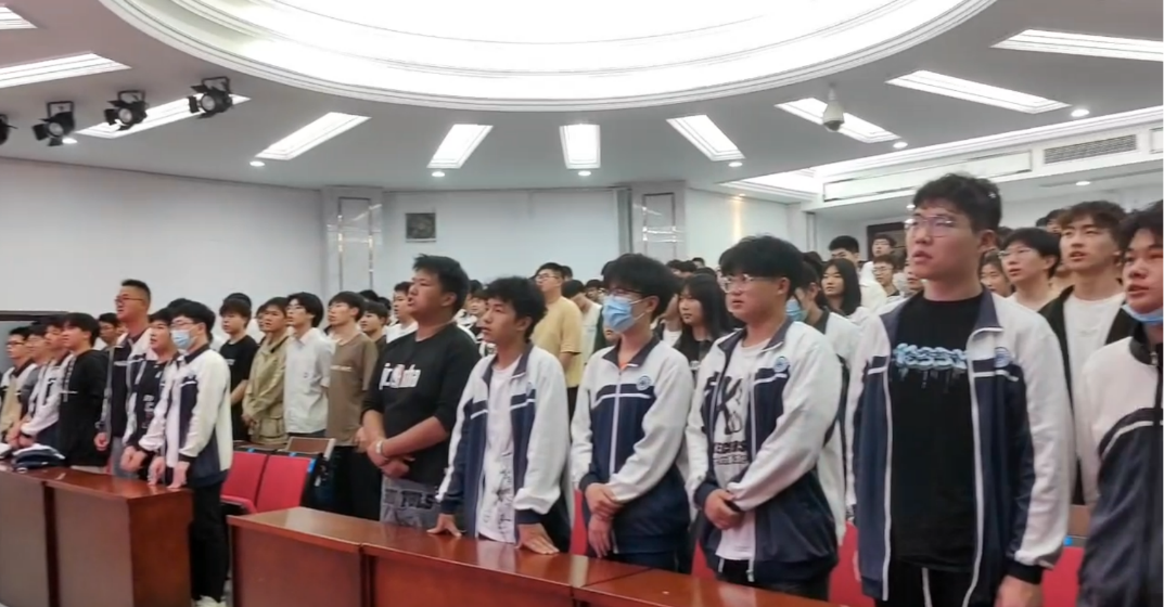 仪式最后,全体与会人员齐唱团歌,在激越的旋律中领悟团课学习以及入团对于青少年追求政治进步的重要意义。