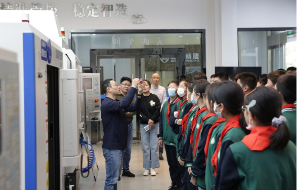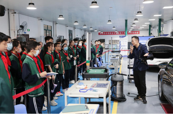 2023年5月11日下午,武汉市汉铁初级中学周盈副校长带领50余名师生走进武汉机电工程学校,在武汉机电工程学校林汉元书记及相关部门负责人的陪同下,开启了一段别样的职业体验之旅。5分钟的精彩短片《我的职校我的青春》拉开了体验之旅的序幕,激发了同学们迫切开始旅程的好奇心。第一站师生来到驻校合作企业——北京精雕科技集团有限公司武汉分公司,感受大国重器高精尖技术的厉害。第二站师生走进机电专业部高水平实训基地,参观了智能工厂、城市轨道交通信号仿真实训室、工业机器人技术应用实训室。第三站师生参观信息技术专业部计算机平面设计专业学生的绘画、手工、设计作品展。第四站师生走进现代制造部高水平实训基地,观看了数控编程加工的过程,亲自体验激光雕刻技术。第五站师生走进汽车专业部高水平实训基地,参观了汽车维修实训室、汽车美容实训室、汽车虚拟仿真实训室、汽车钣金实训室。每到一处参观体验场所,都有专业部的教师耐心讲解,认真示范,师生流连在一个个不同实训室,被各种精巧的加工工件所吸引,折服于现代化设备与技术,深深感叹科技的力量和工艺的伟大。走出最后一个实训室,在依依不舍中,师生意犹未尽结束了此次职业体验之旅。