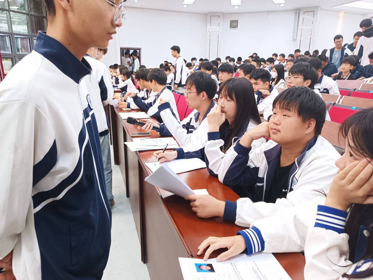 同学们怀揣着对学生会的憧憬和向往,井然有序得排成一队。首先进行的是自我介绍环节,同学们用简洁的语言对自己进行客观全面的介绍,让指导老师与主席团能尽快了解自己。其次提问环节,面试官基于各部门的基本职能、工作性质、部门特色等方面,对同学们进行提问。面对不同的提问,同学们都有条不紊地回答着,有的从容大方、有的内敛温和、有的活泼热情,都在以最佳的状态展现自己最优秀和最自信的一面。