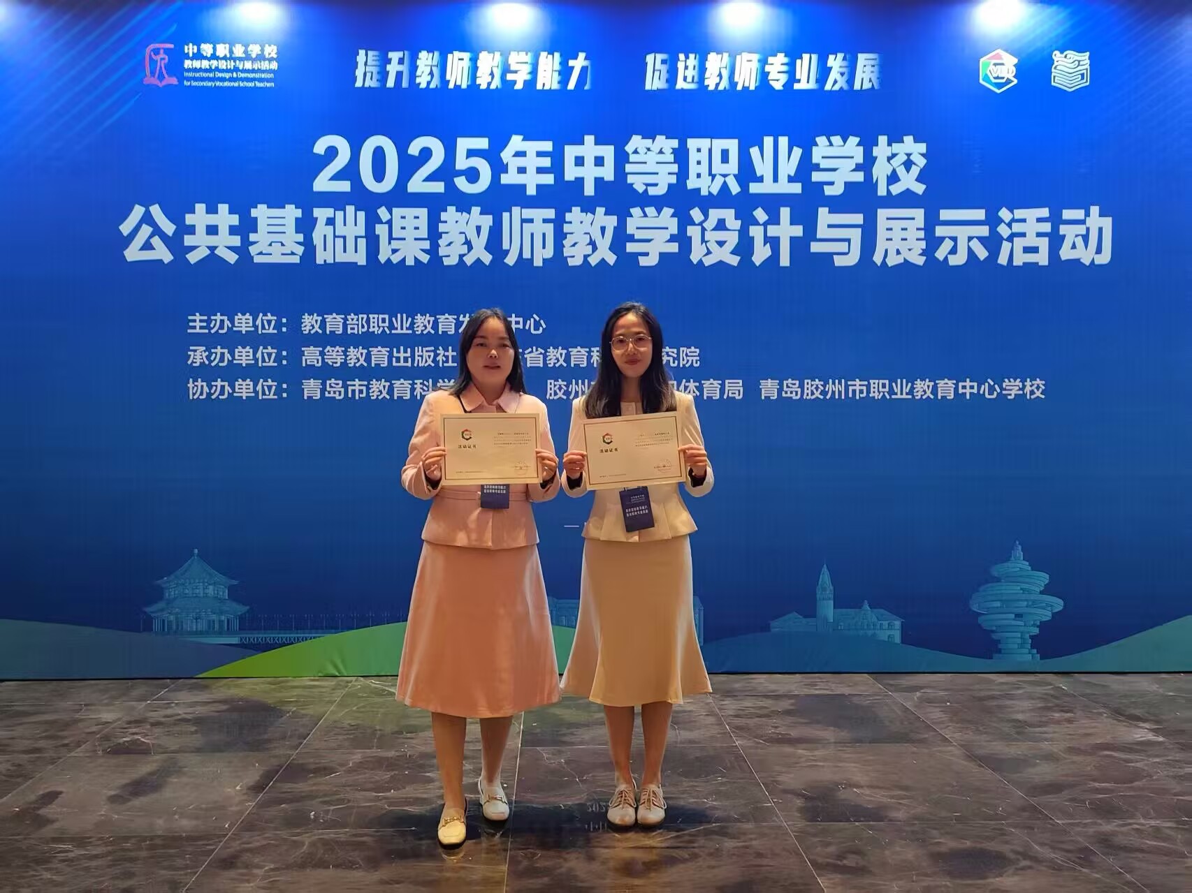 2025年10月24至27日,在教育部职业教育发展中心主办的全国中等职业学校公共基础课教师教学设计与展示活动中,我校英语教师王冰洁、数学教师何耀焕分别夺得典型案例展示者、优案例展示者荣誉称号,特此报喜!