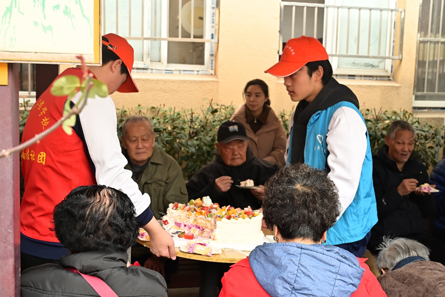 活动的最后是为老人们举办的一场 集体生日会” 。伴随着熟悉的旋律,志愿者们为寿星老人们戴上生日帽,点亮蜡烛,齐声唱起《生日快乐歌》。在众人的祝福声中,老人们共同许下心愿,吹灭蜡烛。志愿者们将切好的蛋糕双手递到每一位老人手中,香甜的蛋糕不仅暖了老人的胃,更甜进了他们的心里。