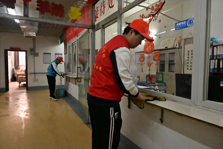 下午时分,志愿者们的到来让平日里安静的敬老院顿时热闹起来。一进入大院,同学们便迅速分组行动,撸起袖子投入到打扫卫生的劳动中。他们有的擦拭门窗玻璃,有的清扫庭院落叶,还有的细心整理老人们的房间,不放过任何一个卫生死角,用实际行动为老人们营造一个更加整洁、舒适的居住环境。