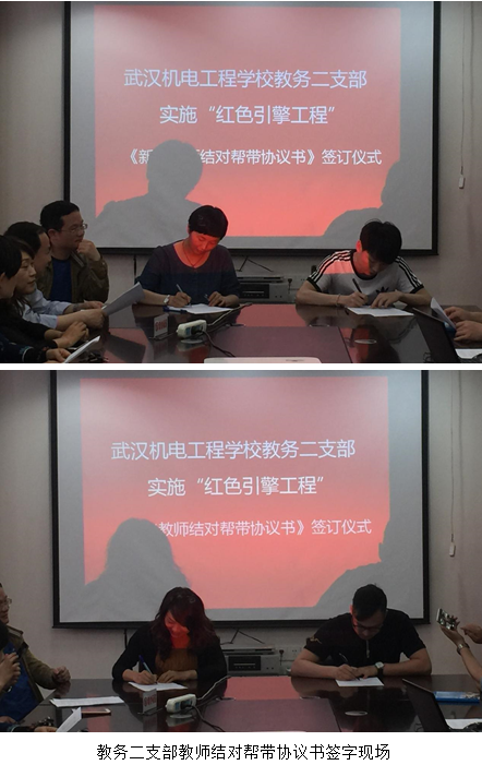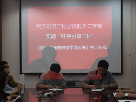 为建设一支忠诚职业教育事业、德才兼备、与时俱进的教师队伍。教务二支部开展了“实施红色引擎”“双培养”工程,暨“把骨干教师培养成党员,把党员培养成教学和管理骨干”主题教育——“老带新党员示范岗”活动,并于5月11日在综合楼二楼会议室隆重举行了“新老教师结对帮带”签字仪式。