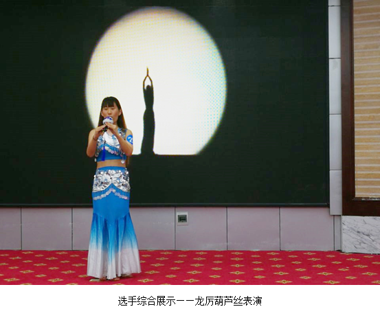 比赛期间,学校党政工主要领导亲临现场巡视,为选手们鼓劲,部分教师在观摩区自发观看了比赛。选手们在短短3分钟的“综合展示”环节中亮点纷呈。选手以配乐朗诵、演唱、现场书法、戏曲演唱、器乐独奏、健美操、魔术等多种形式展示个人才艺,点亮了舞台,博得了阵阵掌声。