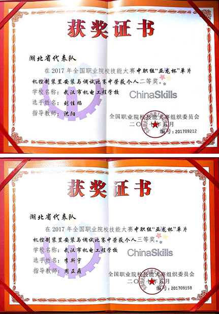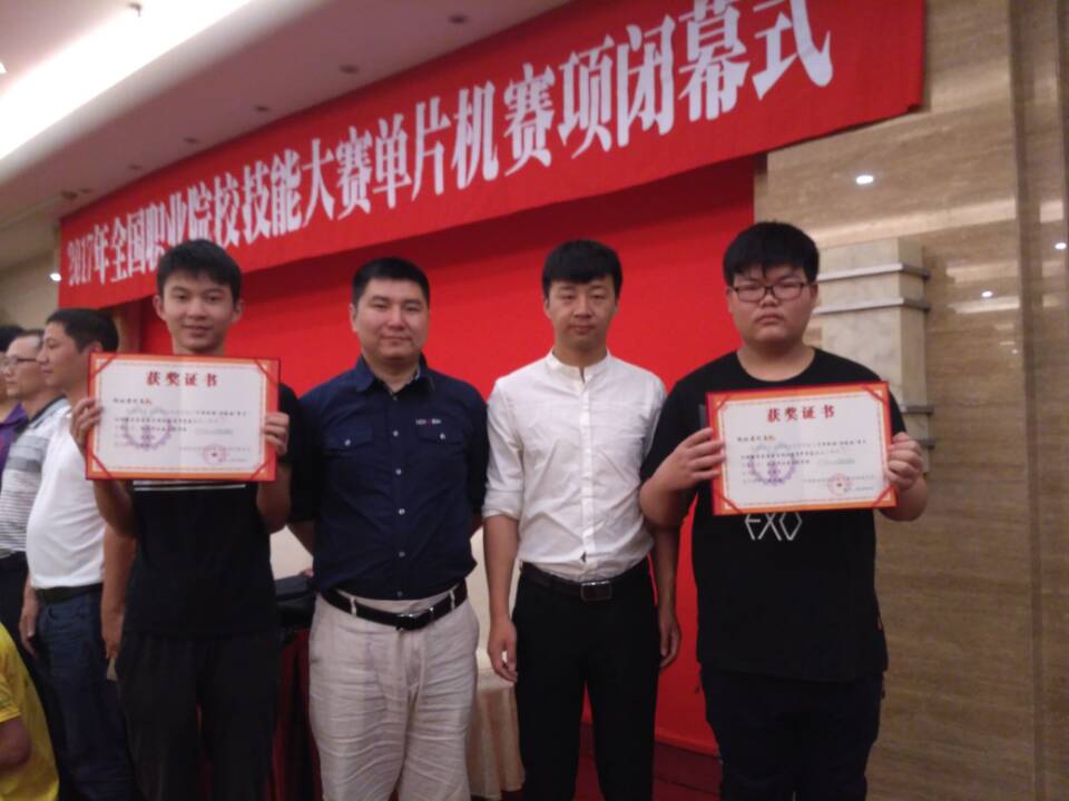 2017年6月1日—6月3日,我校选手代表湖北省参加2017年全国职业院校技能大赛单片机安装与调试竞赛项目,由我校沈阳老师和周正鼎老师指导的3+2机电1501刘佳焰和3+2机电1501李斯宇同学经过两天3夜的艰苦奋斗,分别获得全国二等奖和三等奖的好成绩!