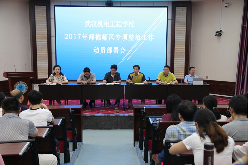 6月9日下午,我校召开2017年师德师风专项整治工作动员部署会暨教师五项技能竞赛总结表彰会。全体教职工参会,会议由校长龙善寰主持。