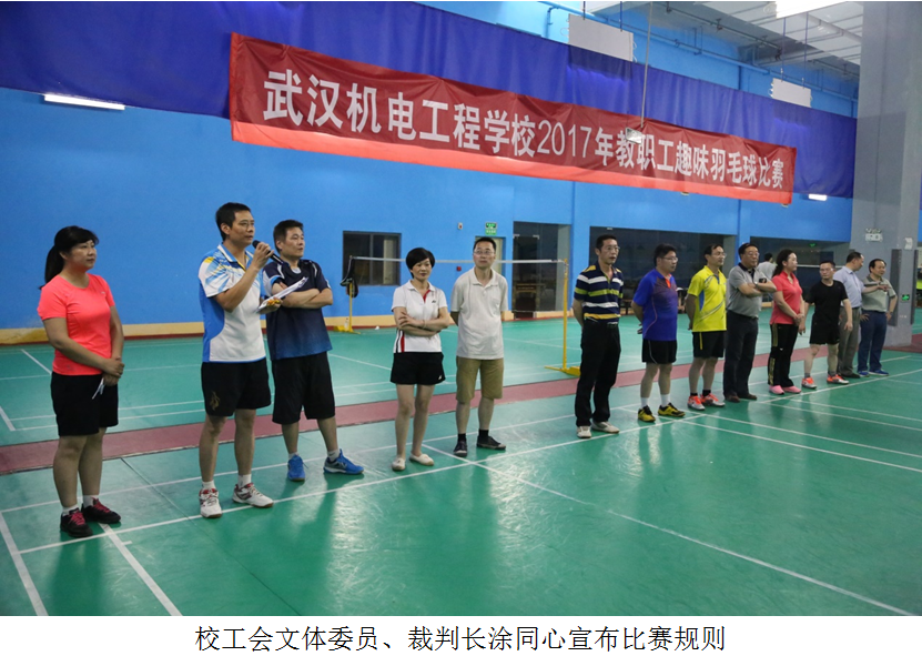 6月23日下午,我校教职工齐聚江岸区绿色动力羽毛球馆,共同参加武汉机电工程学校2017年教职工趣味羽毛球比赛。比赛由校工会主办。