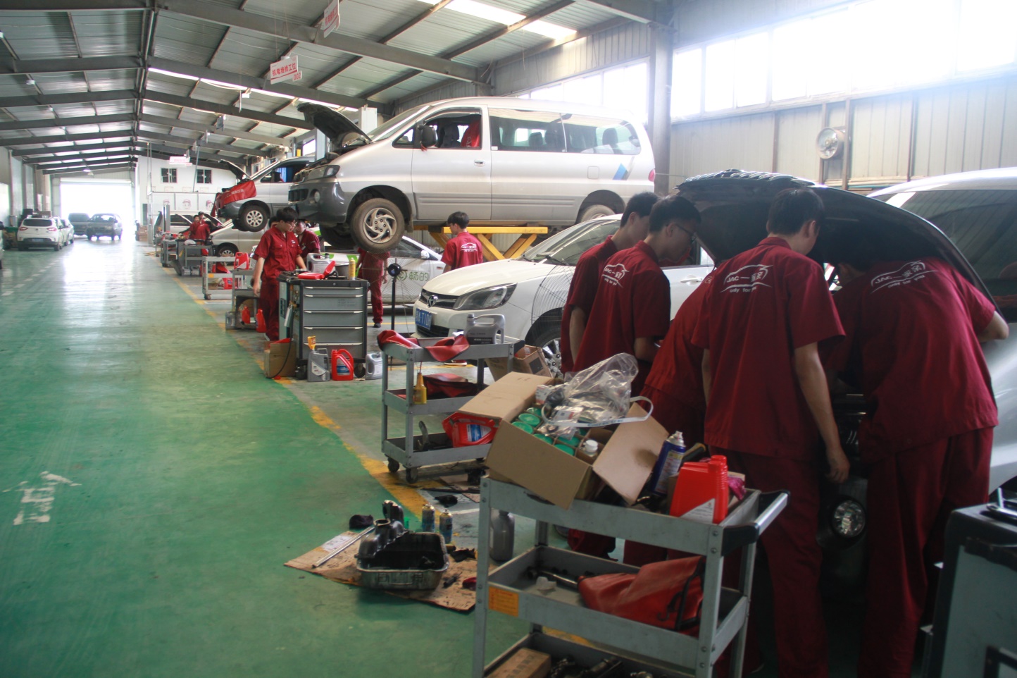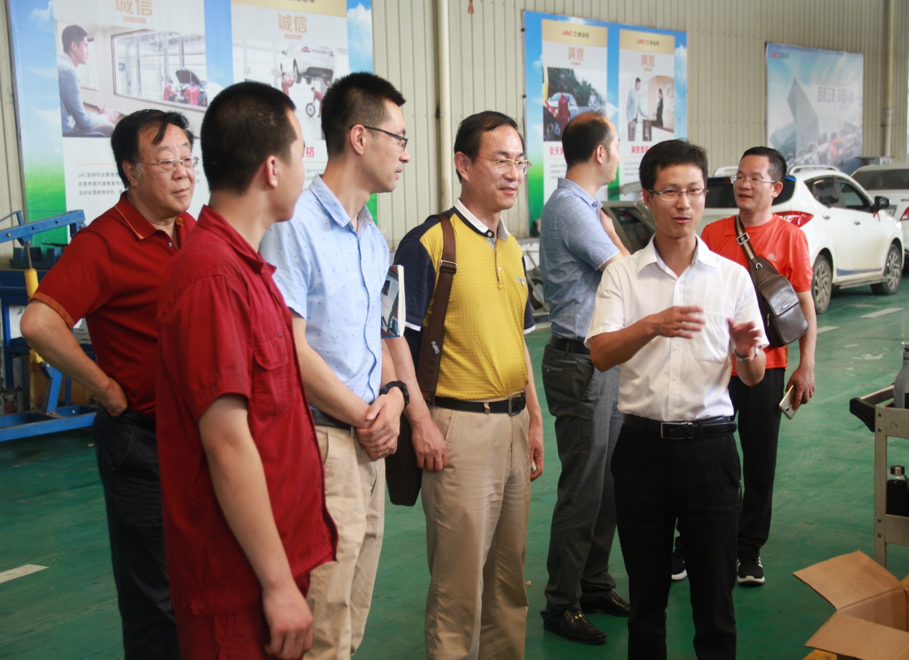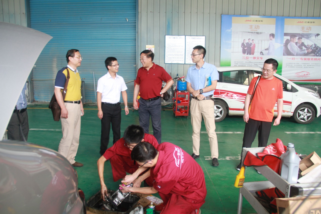 学校领导首先来到的是武汉盟盛人新能源汽车产业园发展股份有限公司,到达后直奔学徒制学生工作岗位,20名学生们身着企业统一工作服,正在聚精会神的在师傅的带领下进行故障汽车的检修维护。学校领导与轮岗的学生、企业培训师肖明和企业班主任熊雯进行了交流,了解学生学习、生活及思想情况,企业负责人黄佩珍也向学校方面汇报了学生在企业进行学徒制培养的情况,并将学生前一阶段考核、总结、评价资料给学校做了展示,并就暑期学徒制工作做了交流部署。