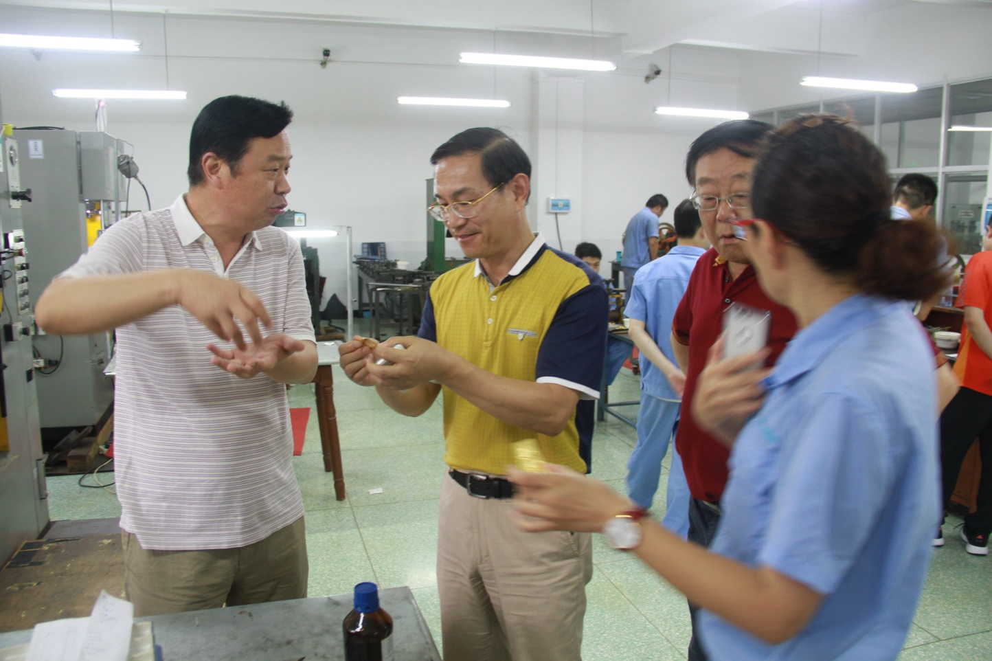 2017年7月5日下午,武汉机电工程学校龙善寰校长、黄卫山副校长、牛志平副校长、现代制造系部石磊部长、汽车教研室朱岸主任及学生科段荣老师,一行5人,冒着酷暑,驱车前往武汉盟盛人新能源汽车产业园发展股份有限公司和新金珠宝首饰制造有限公司学徒制合作企业看望慰问下厂实践的学徒制学生。