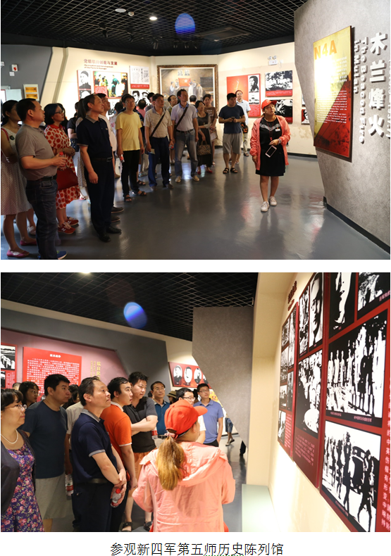 姚家山是抗战时期新四军第五师旧址,老一辈无产阶级革命家李先念、陈少敏、任质斌等从1940年至1945年在这里驻扎长达6年之久,与当地居民一起团结抗战,谱写了气壮山河英雄篇章。我校党员一行,来到新四军第五师历史陈列馆,庄严端庄的站立在李先念、陈少敏、任质斌等主要领导同志铜像前,再一次举起右手,面对鲜红的党旗举行了庄严的宣誓。通过宣誓又一次给每位党员的带来了内心的震撼,时刻提醒要牢记党的宗旨,认真履行党员义务,做一名合格党员,肩负起历史使命,为实现党的最高理想和最终目标而奋斗!宣誓后,我们在讲解员的带领下参观新四军第五师历史陈列馆。陈列馆总建筑面积2400平方米,分为三层,设有一个序厅、六个基本陈列展厅、一个临时展厅和一个多功能厅。其中,展览分“木兰烽火”、“怒潮喷涌”、“挺进鄂豫”、“中原抗战”、“战略包围”、“辉煌胜利”六个部分。六个部分用大量历史图片和珍贵文物,结合现代技术手段制作的逼真场景及艺术品,采用“以人述事、以事述史”的方式,反映了新四军第五师在抗战期间,独立支撑武汉外围敌后抗战的百折不挠、骁勇善战的爱国主义精神。历史陈列馆参观结束后,我们又来到了司政大礼堂,参谋处、后勤部等红色记忆旧址进行参观。