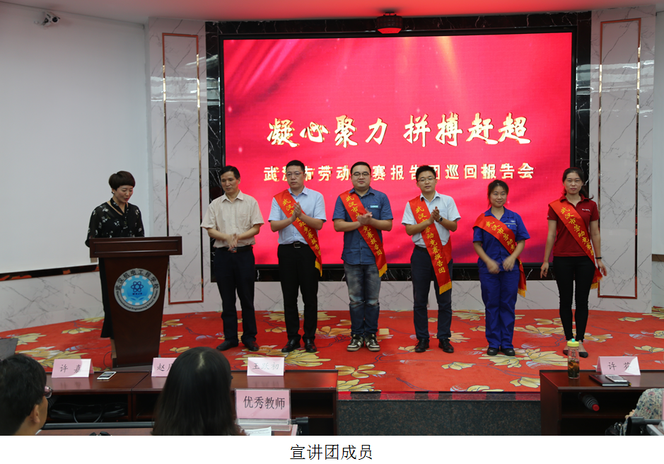 首先,市委宣传部、市总工会联合组建的“凝心聚力,拼搏赶超,喜迎十九大”武汉市劳动竞赛报告团走进教育系统、走进机电学校,通过报告、视频、交流互动方式进行巡回宣讲。由报告团第三宣讲组长王跃初主席带队,来自中交第二航务工程局有限公司许嘉、市城市建设投资开发集团有限公司顾文峰、武汉地铁集团有限公司綦建峰、武昌船舶重工集团有限公司万祎、富士康科技集团(武汉)科技工业园侯俊杰等宣讲成员,分别以亲身经历,切身体会,对劳动竞赛中的先进事迹进行了宣讲,以生动、鲜活的感人事迹,向现场师生呈现了劳动竞赛活动中广大一线职工拼搏赶超的精神风貌,诠释平凡岗位上的不平凡业绩,赢得广大师生阵阵掌声。