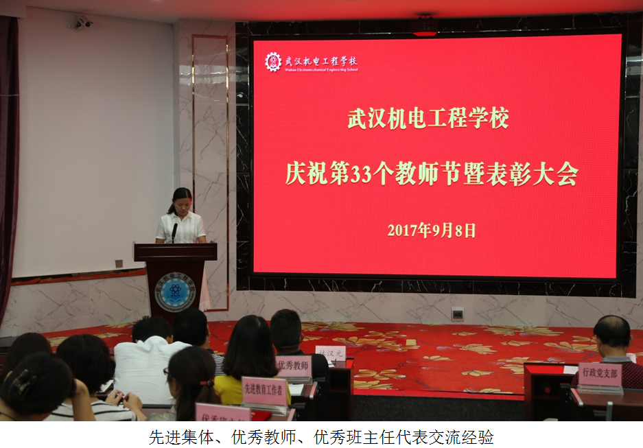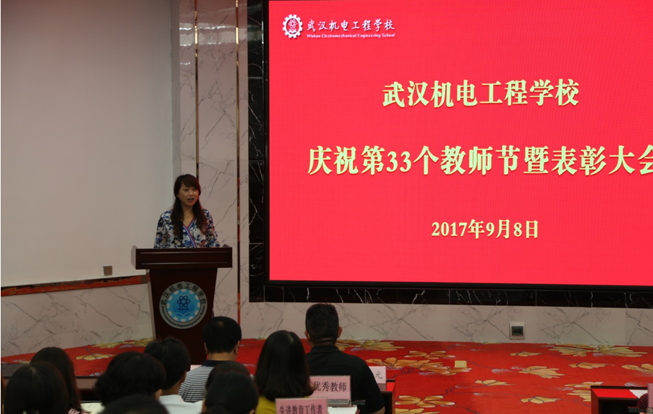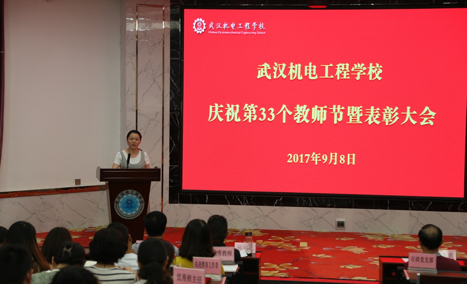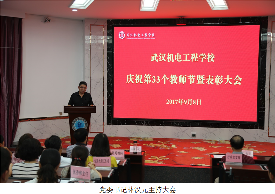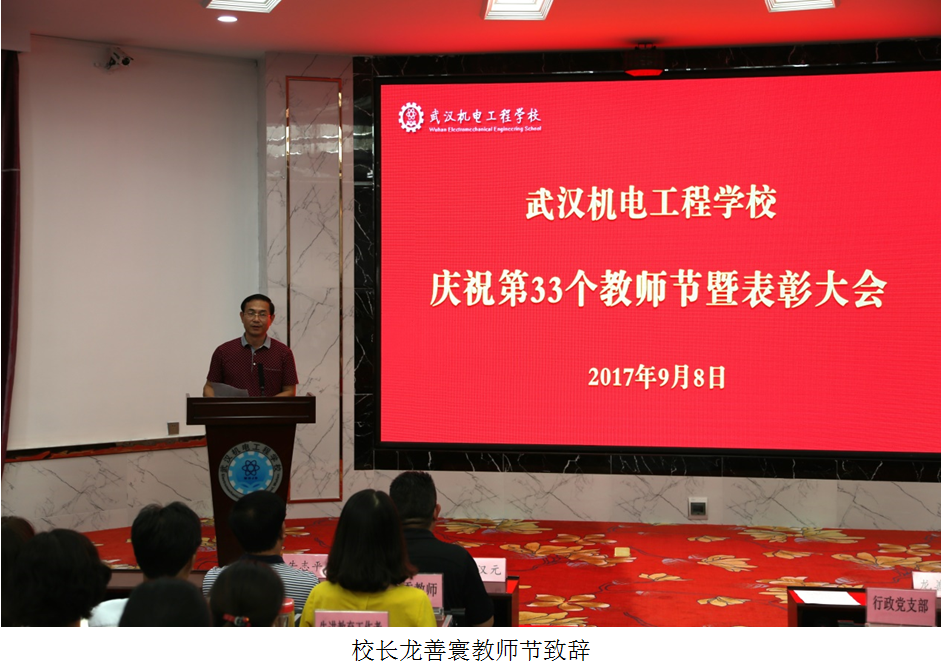 金色的九月,丹桂飘香。2017年9月8日下午,我校召开为庆祝全国第33个教师节暨表彰大会。市教育局副局长田文江、职成教处处长李万平、市教育工会主席许芬出席会议,学校领导、教职工及部分学生代表共200余人参加了会议。