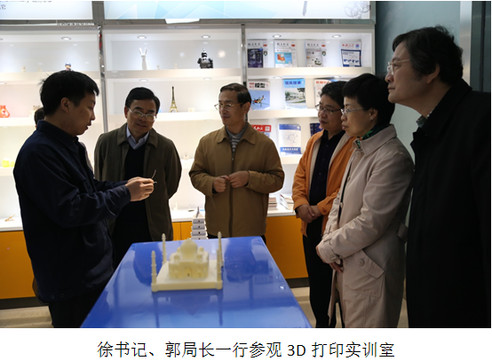 调研组一行在我校领导的陪同下分别参观了机电专业高水平实训基地、现代轨道交通实训室、党群活动中心和3D打印实训室进行了现场调研。他们边参观边畅谈,了解到我校支部建在系部里面和扎实开展有特色“三进三服务”系列活动的相关情况,同时也对实训基地建设情况和教学使用情况进行了解,调研组一行对我校支部建设情况表示肯定和高水平的实训环境建设表示赞赏。
