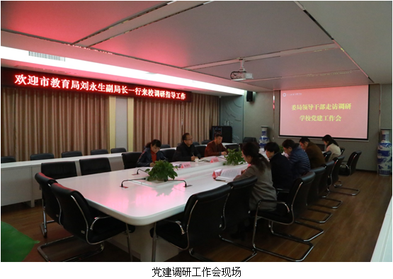 11月28日,武汉市教育局副局长刘永生带队,职称处处长李万平、科长徐瑞琳一行来我校调研党建工作。校党委书记林汉元,党委委员纪委书记龚蔚、党委委员副校长杨斌、党群工作部主任王琼等陪同实地查看了各支部党员活动中心和实训基地建设情况。