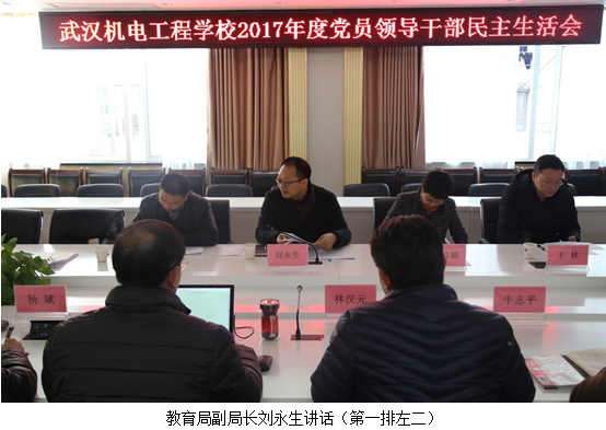 2月23日,根据市教育工委统一部署,我校在综合楼二楼会议室召开2017年度党员领导干部民主生活会。市教育工委党员领导干部民主生活会督导组成员:组长刘永生副局长、董亦频处长、叶勇调研员、王林科长来我校全程指导民主生活会。校党委书记林汉元主持会议,全体党委成员参加会议。