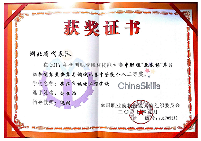 成果获奖:2017年全国职业院校单片机技能竞赛二等奖