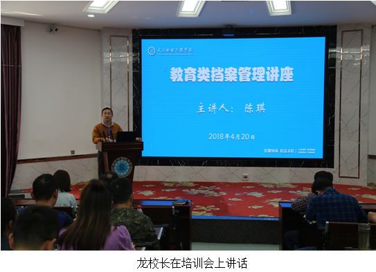 陈科长从档案概述、各门类档案整理要求、档案信息化要求、档案保管利用等五个方面对学校档案管理进行了全面讲解,并重点介绍了档案管理的“三纳入”“四参加”“四同时”、科技档案整理要求、档案信息化等内容。通过培训,广大教职工对档案工作有了新的认识,对做好今后档案工作有很大的帮助。龙校长在讲话中对去年的档案工作给予充分肯定,对2018年学校档案工作提出要求,表示学校将以此次培训为契机,努力把档案制度建设、库房管理、档案收集整理、档案利用等工作抓好抓实,推动学校档案工作再上新的台阶。