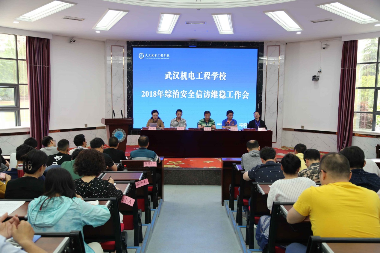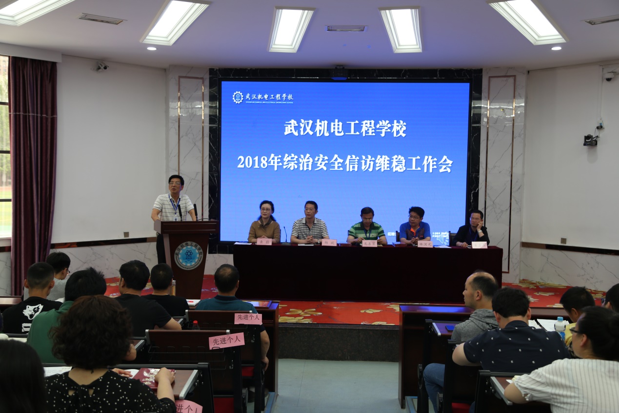 2018年5月4日下午,武汉机电工程学校举行2018年综治安全信访维稳工作会。全体教职工参加会议,校长龙善寰主持会议。