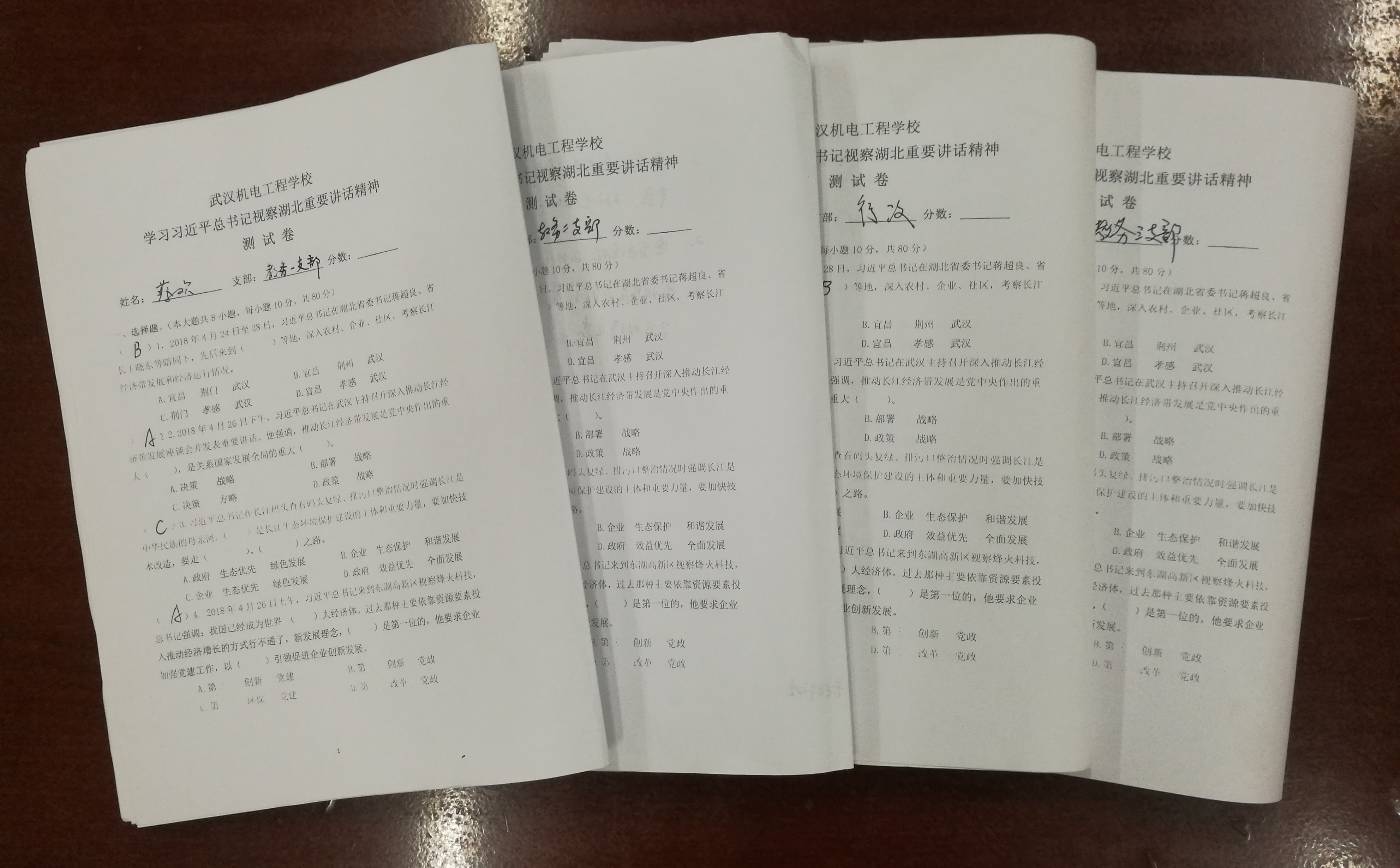 各支部完成《学习贯彻习近平视察湖北武汉重要讲话精神》测试试题