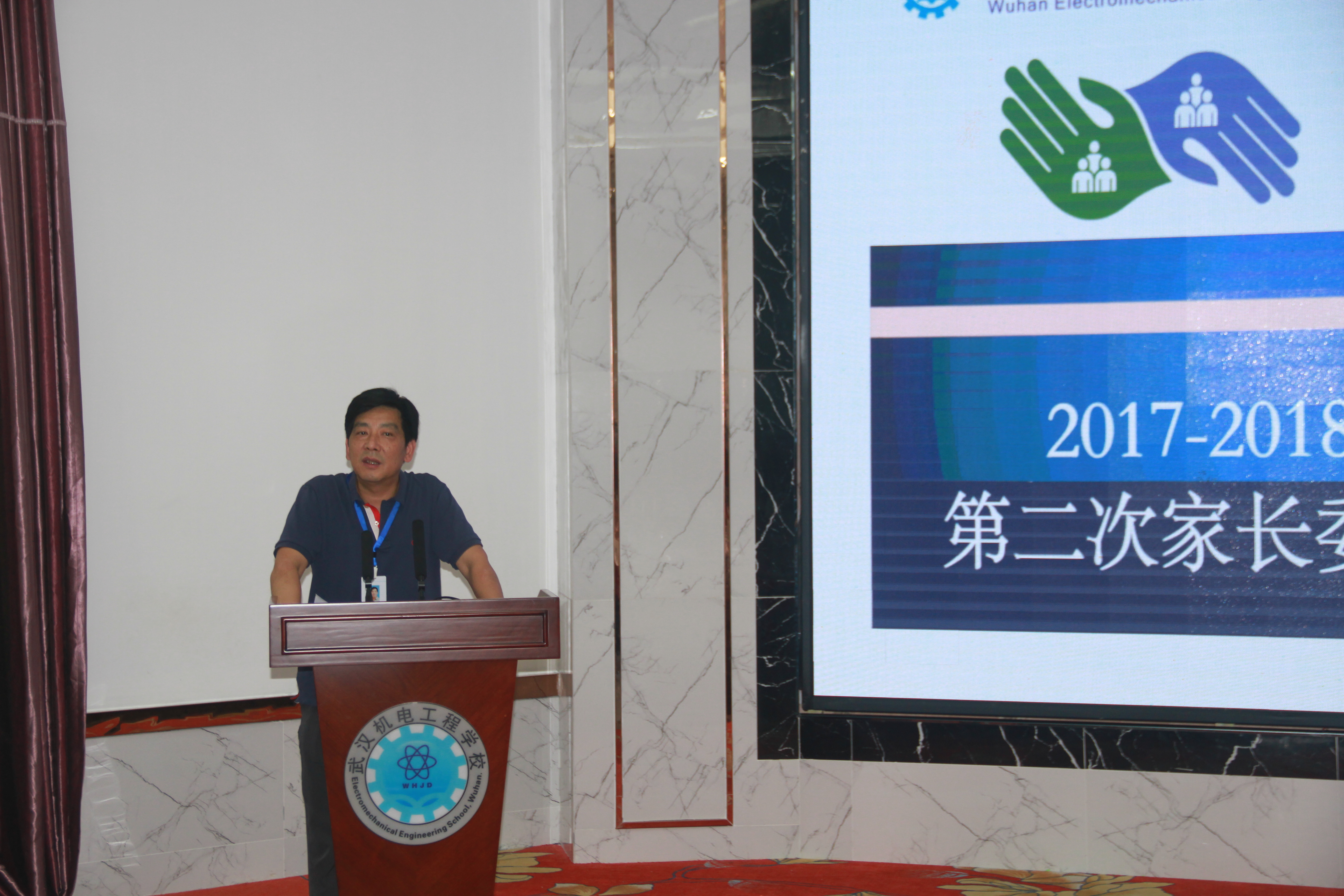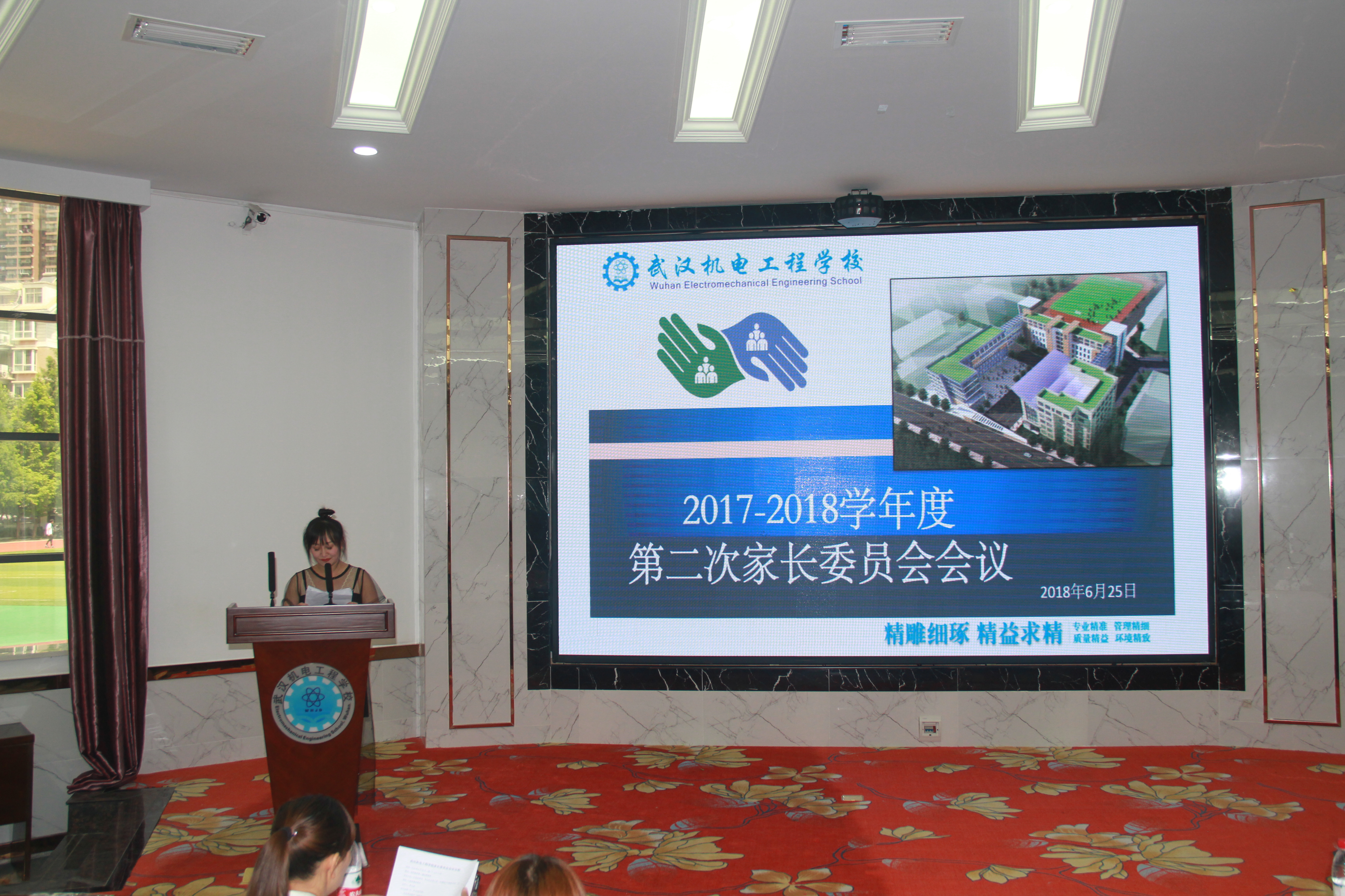 武汉机电工程学校家长委员会在学校领导的关心和支持下,在各位家长委员的积极参与下,已经顺利召开了三次。在家校共同育人模式下,学校的管理水平再上新台阶。 6月25日上午9点30分,在多媒体教室召开了2017-2078学年度第二次家长委员会会议。武汉机电工程学校校长龙善寰、党委书记林汉元、副校长杨斌、副校长黄卫山、纪委书记龚蔚、学生科科长全建华、全体学生科人员、16级、17级家长委员会委员、班主任老师和学生代表参加了本次会议。
