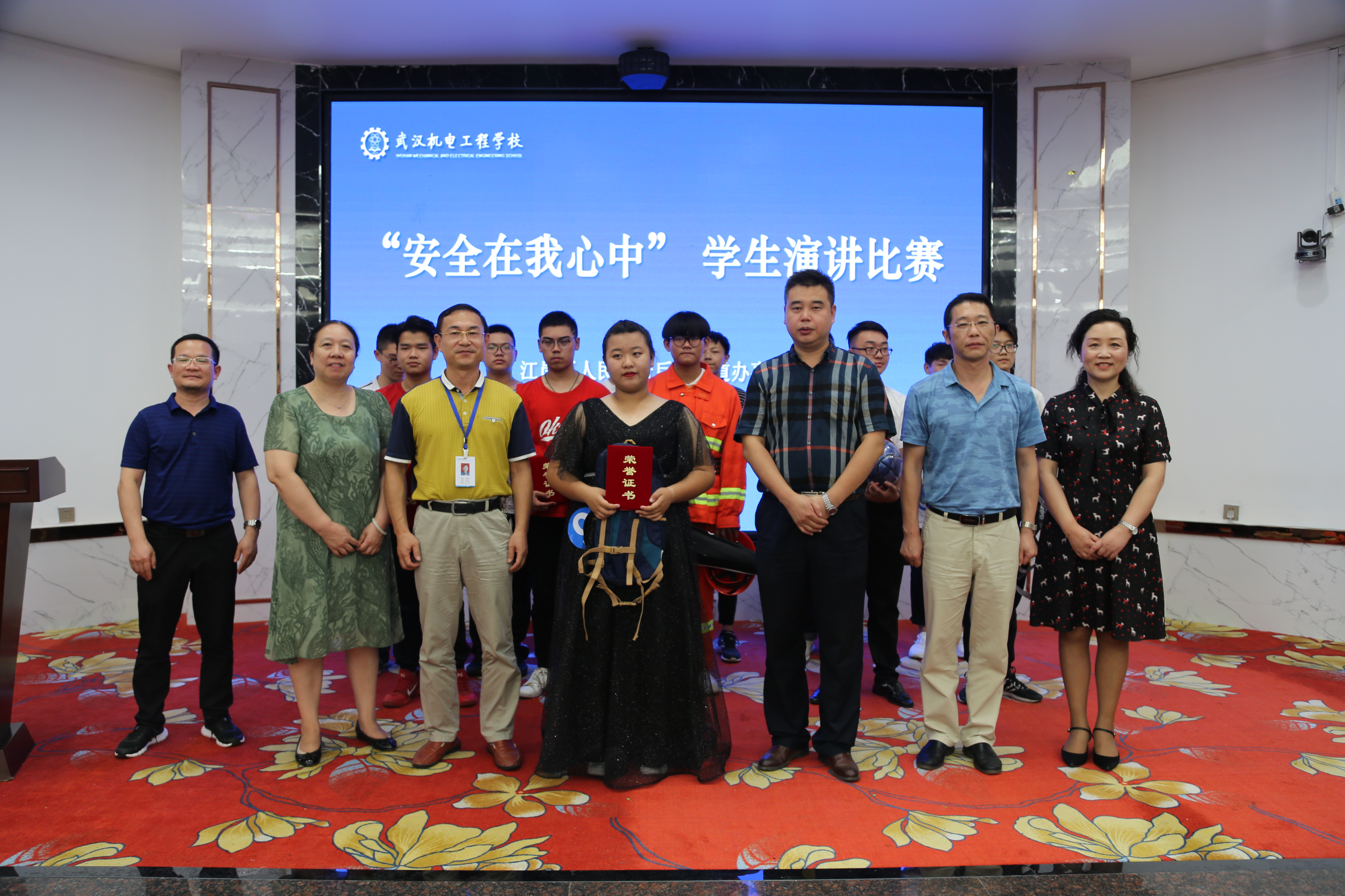 江岸区后湖街道工委副书记、办事处主任闫伟峰在总结点评中指出,本次学校牵头举办的“安全在我心中”演讲比赛,非常及时,很有必要,对于进一步提高广大师生的安全理念、增强安全意识具有非常重要的意义,整个活动组织周密,每位参赛选手都经过了充分准备,演讲认真投入,且各具特色,非常精彩,充分展示了机电学子良好的精神面貌,体现了机电学校的安全管理水平,达到了预期效果,同时代表后湖街道办事处向获奖选手表示热烈的祝贺,对本次演讲比赛的所有组织者、参与者表示衷心的感谢。